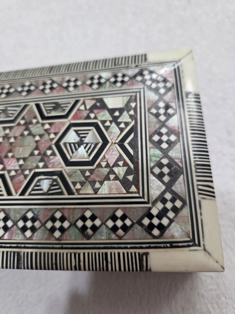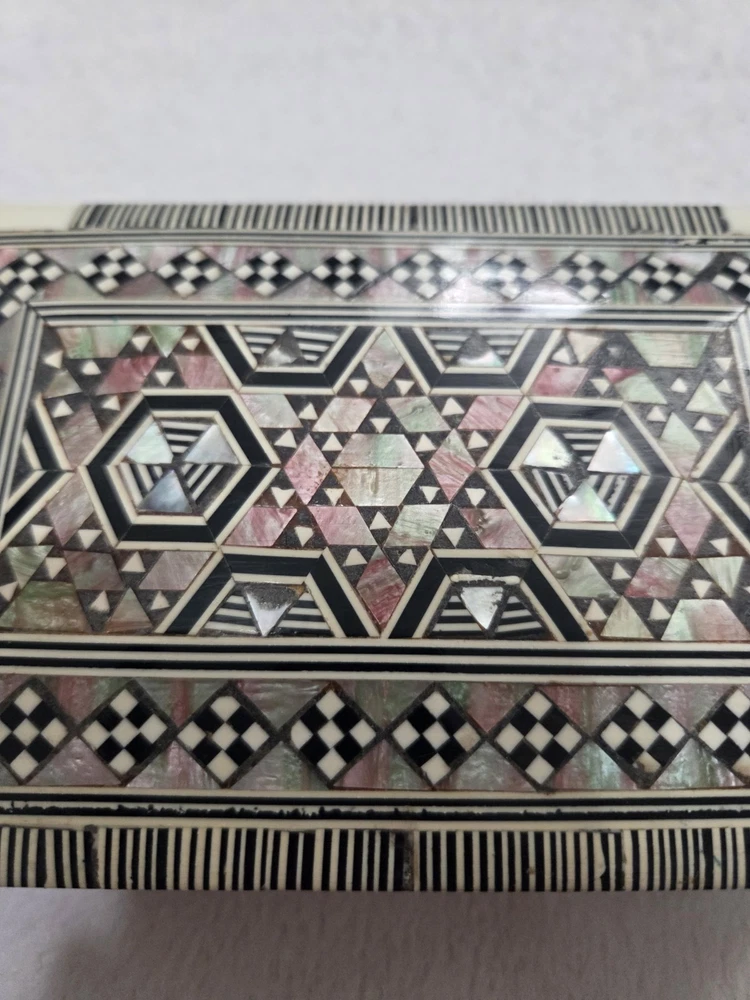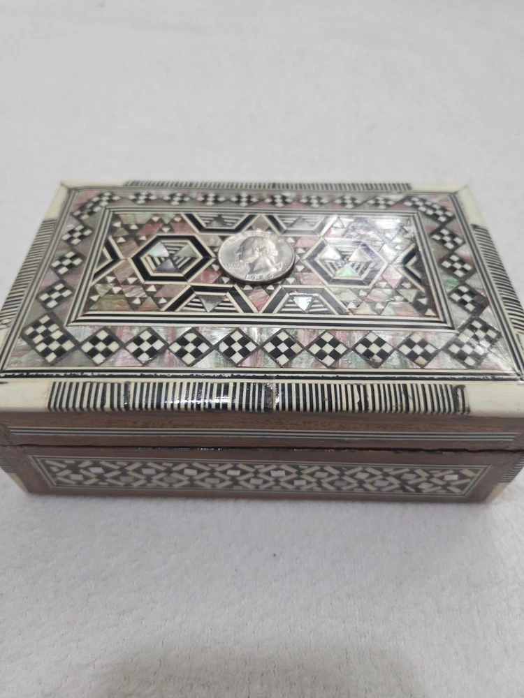 Vintage Egyptian Mother of Pearl Jewelry Box with Intricate Inlay