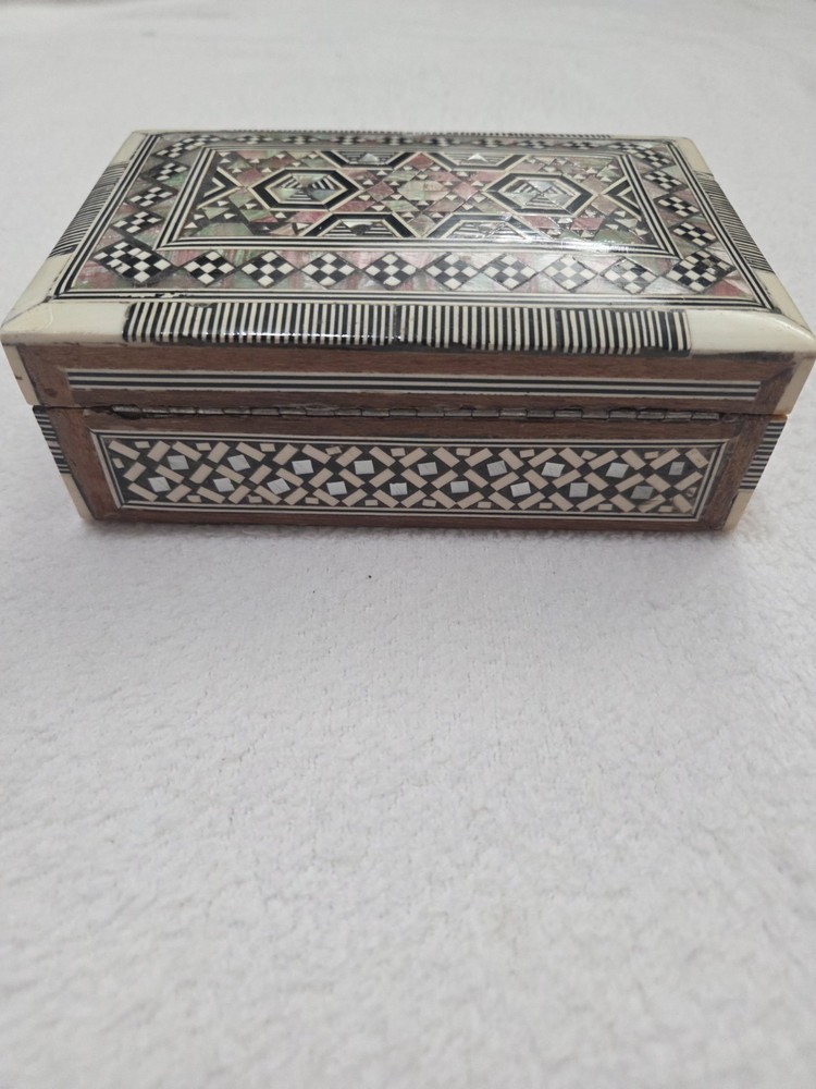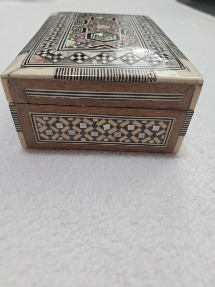 Features: Boxed Number in Pack: 1 Customized: No Department: Adults, Teens Brand: Pearl Collection: Keepsake Boxes Type: Trinket Box Seller Notes: “In immaculate shape” Occasion: All Occasions Country/Region of Manufacture: Egypt Subject: Jewelry Box Finish: Glossy Engraved: No Packaging: Box Shape: Rectangle Original/Reproduction: Original Style: Egyptian Room: Any Room Material: Wood Color: Multicolor Era: Late 20th Century (1970-1999) Size: Small Handmade: Yes Time Period Manufactured: 1970-1979 Theme: Art Suitable For: Furniture Pattern: Mosaic