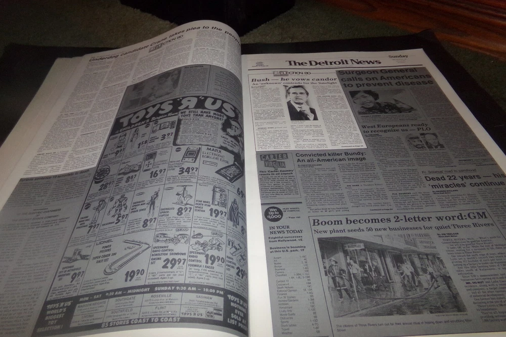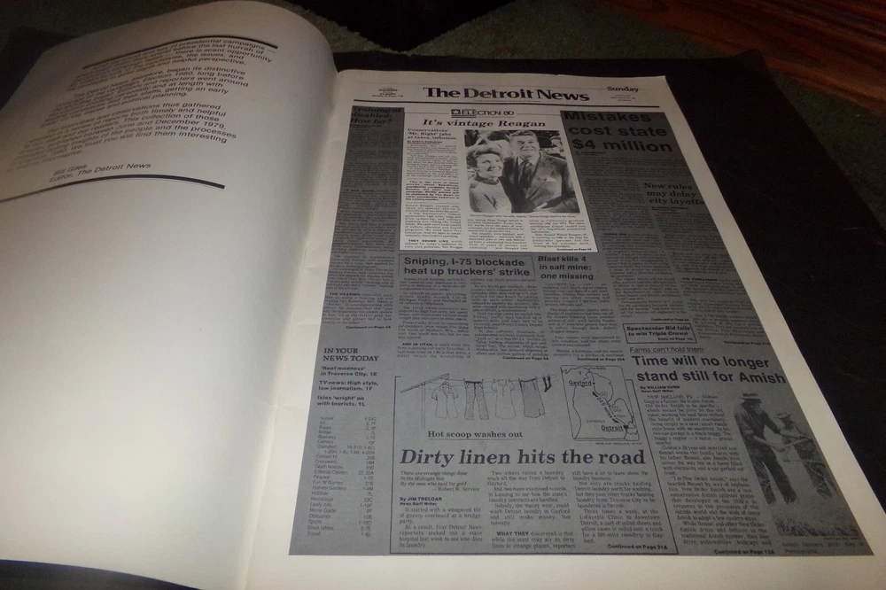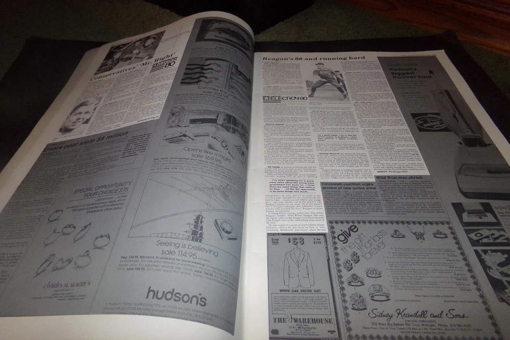 5 Stars is my Goal if you think my service is less then 5 Stars ***** please contact me before leaving seller detailed rating. I want all Customer to be 100% satisfied I will work with customer to the best of my abilities Please read my description Vintage anything 25 years old or older The Post Office is having delays. If you want your item shipped with a different service let me know and I will get you price. This is a Vintage Newspaper Book called Election 80. It is from 1980. It says it is a collection of candidates and profiles the Detroit News did in 1979 on the candidates. It also has ad's and fashion but they are shaded . Check out my other Great Treasures http://stores.ebay.com/treasured-trover Payment is managed by Ebay Payments. Payments is expected within 5 days. Shipping: I usually ship within 1 days of orders. I charge a flat rate on shipping. I combine shipping on multiple items. Returns: Most items are refundable but buyer is responsible for shipping cost that may occur. If planning on returning an item please contact me. If items are not refundable I will clearly say so.