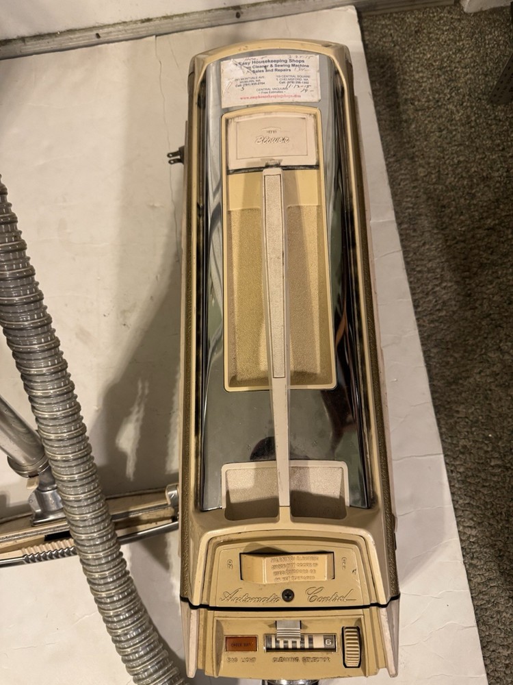 This Vintage Electrolux Canister Vacuum Clean with Attachment in Beige is a classic piece of home cleaning equipment that is bagless and corded, making it easy to use and maintain. With a power of 115W, this unit is lightweight at 20lbs and includes a nozzle and extension wand for added versatility in cleaning different areas of your home. The cord rewind feature adds convenience for storage, and it is designed by the reputable brand Electrolux, known for its quality vacuum cleaners. Made in the United States, this canister vacuum is a reliable and efficient option for keeping your space clean.