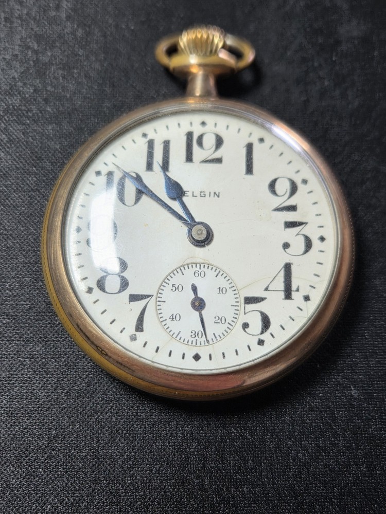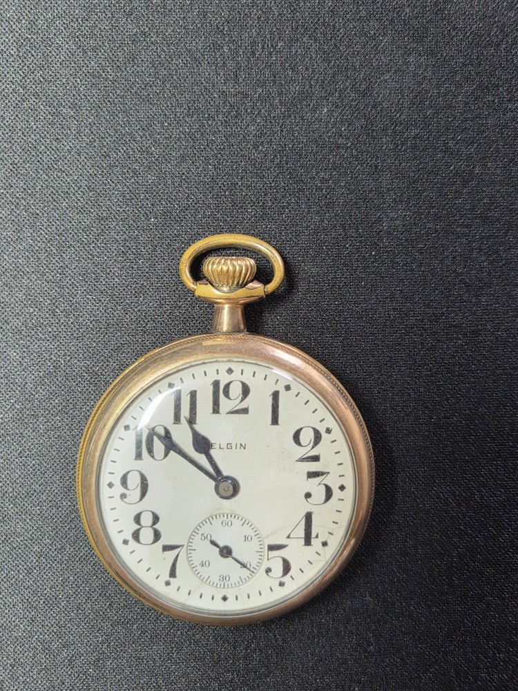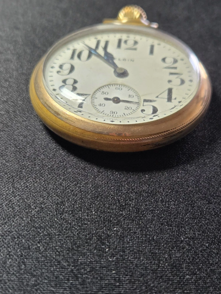 $ 685.88Elgin Art Deco Silver Pocket Watch White Dial Arabic Numerals Open Face