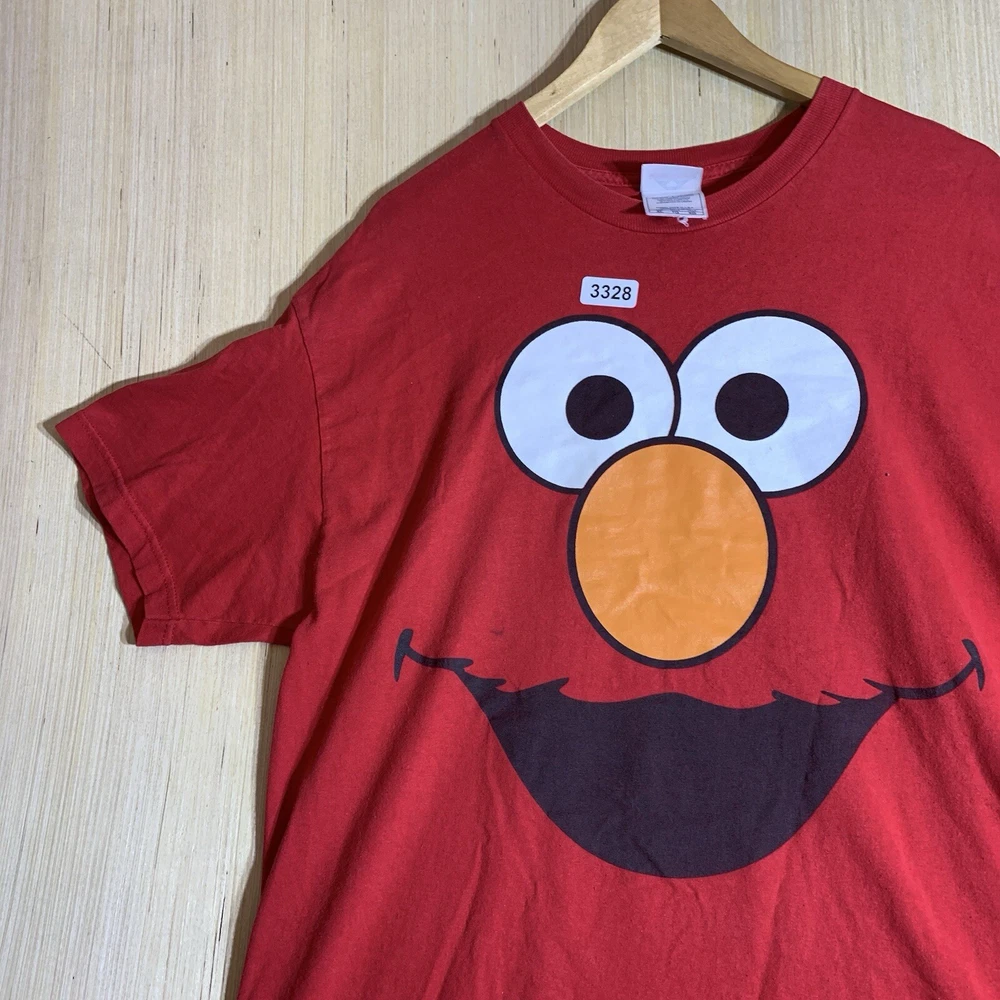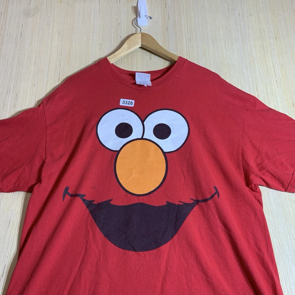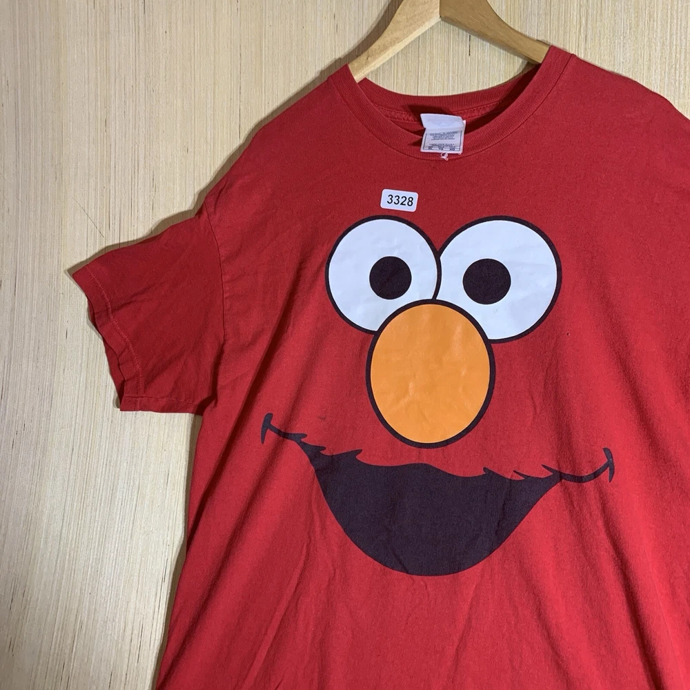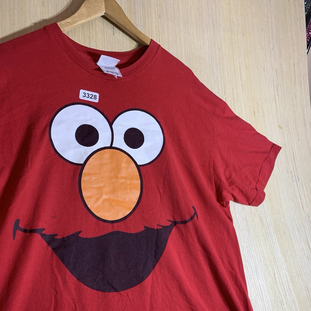 This vintage Elmo shirt is a must-have for any hipster, nature lover, motorcycle enthusiast, or fan of 90s hip hop. The red cotton fabric with an embroidered logo accent adds a touch of classic style to any outfit. It features a crew neck, short sleeves, and a regular fit, making it comfortable and easy to wear for all seasons. The shirt is preshrunk, ensuring that it retains its vibrant color and shape after washing. This men's t-shirt is available in size XL and is perfect for outdoor activities, college, or university. The shirt's solid pattern and easy-care features make it a versatile addition to any wardrobe. Whether you're a fan of Elmo or just looking for a funny and unique t-shirt, this vintage Elmo shirt is sure to turn heads.