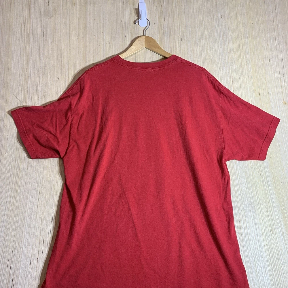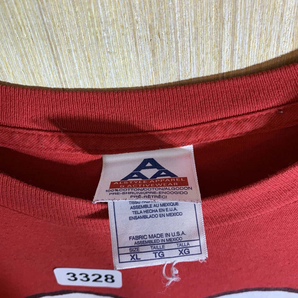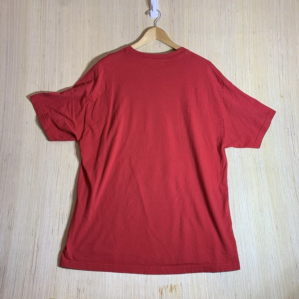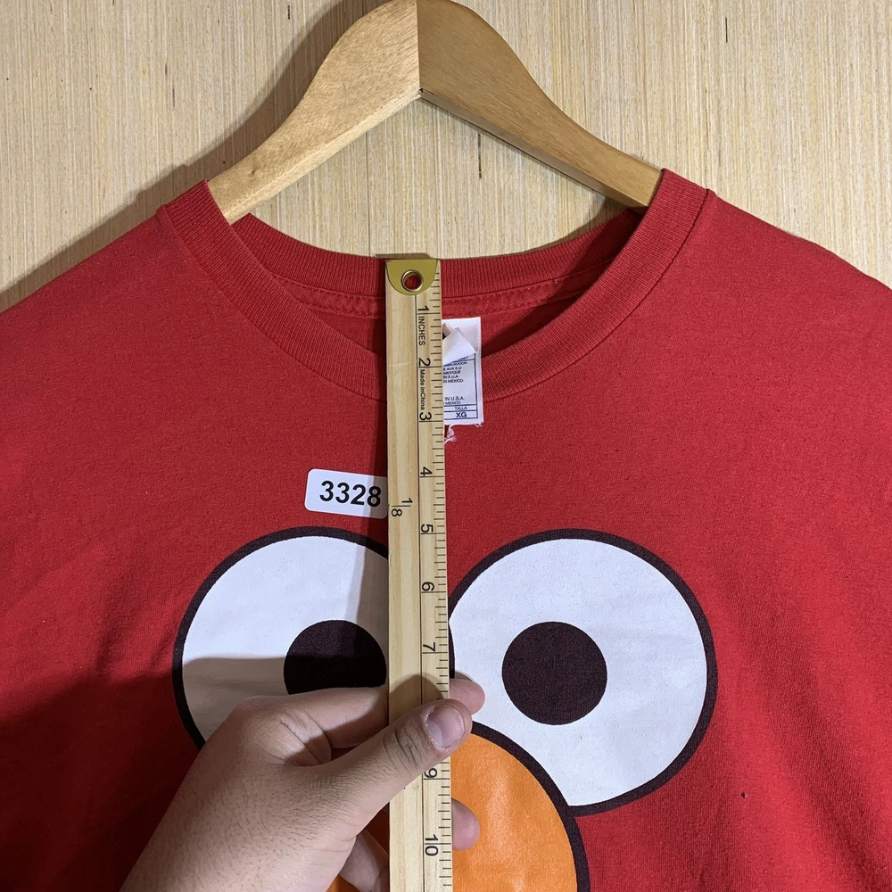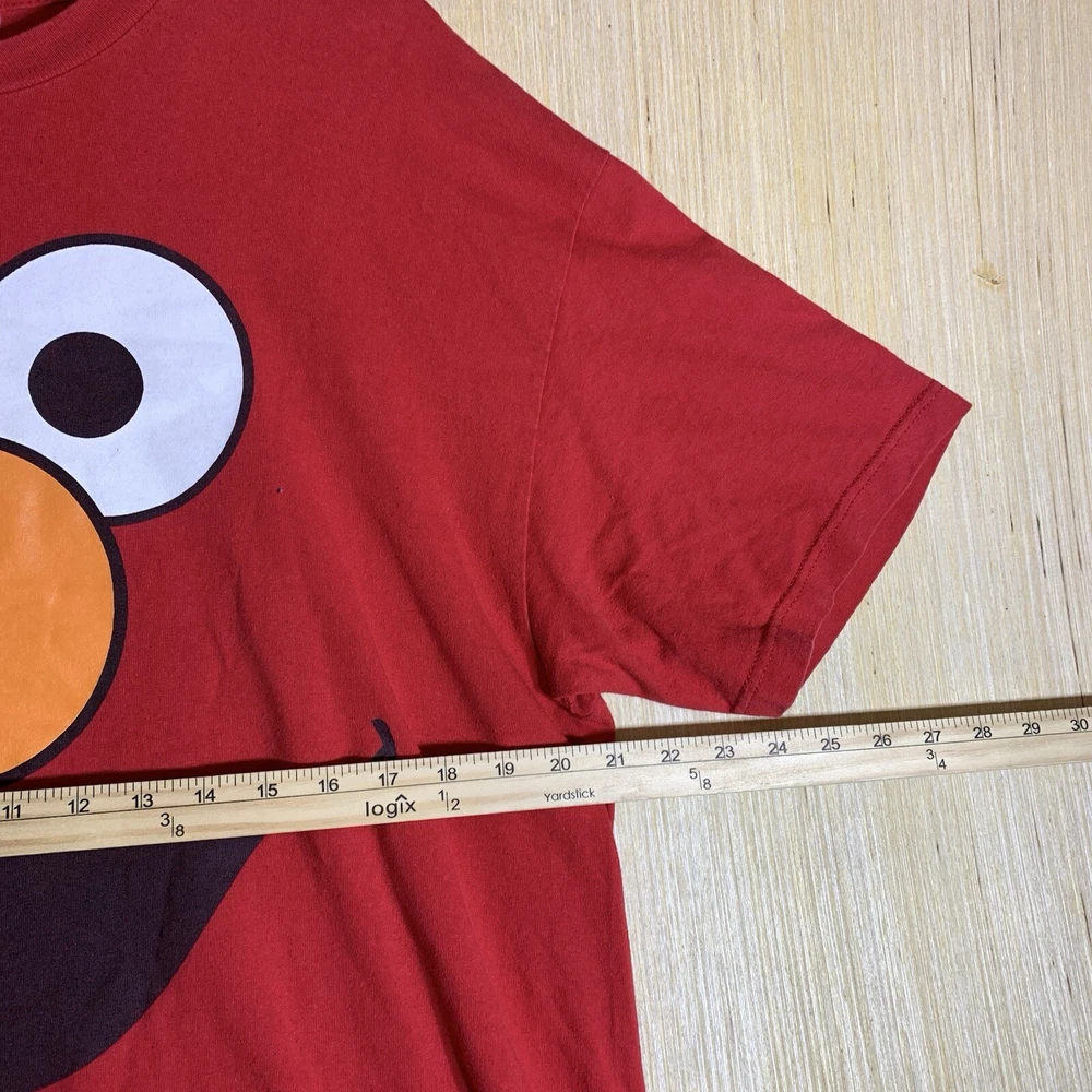 This vintage Elmo shirt is a must-have for any hipster, nature lover, motorcycle enthusiast, or fan of 90s hip hop. The red cotton fabric with an embroidered logo accent adds a touch of classic style to any outfit. It features a crew neck, short sleeves, and a regular fit, making it comfortable and easy to wear for all seasons. The shirt is preshrunk, ensuring that it retains its vibrant color and shape after washing. This men's t-shirt is available in size XL and is perfect for outdoor activities, college, or university. The shirt's solid pattern and easy-care features make it a versatile addition to any wardrobe. Whether you're a fan of Elmo or just looking for a funny and unique t-shirt, this vintage Elmo shirt is sure to turn heads.
