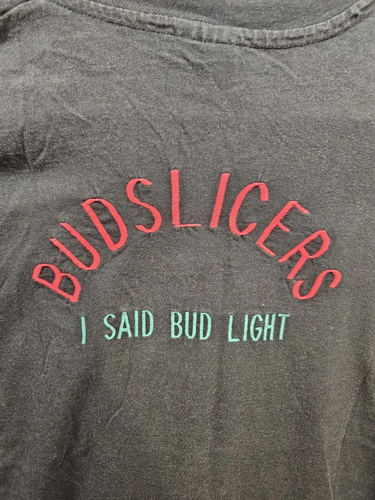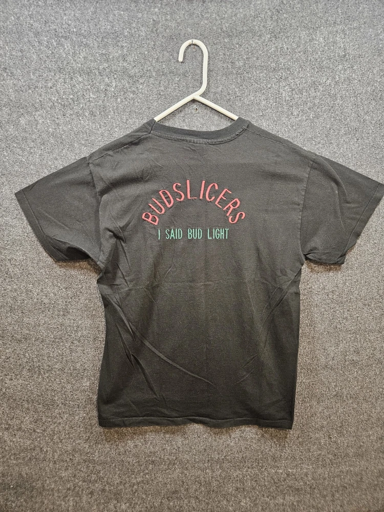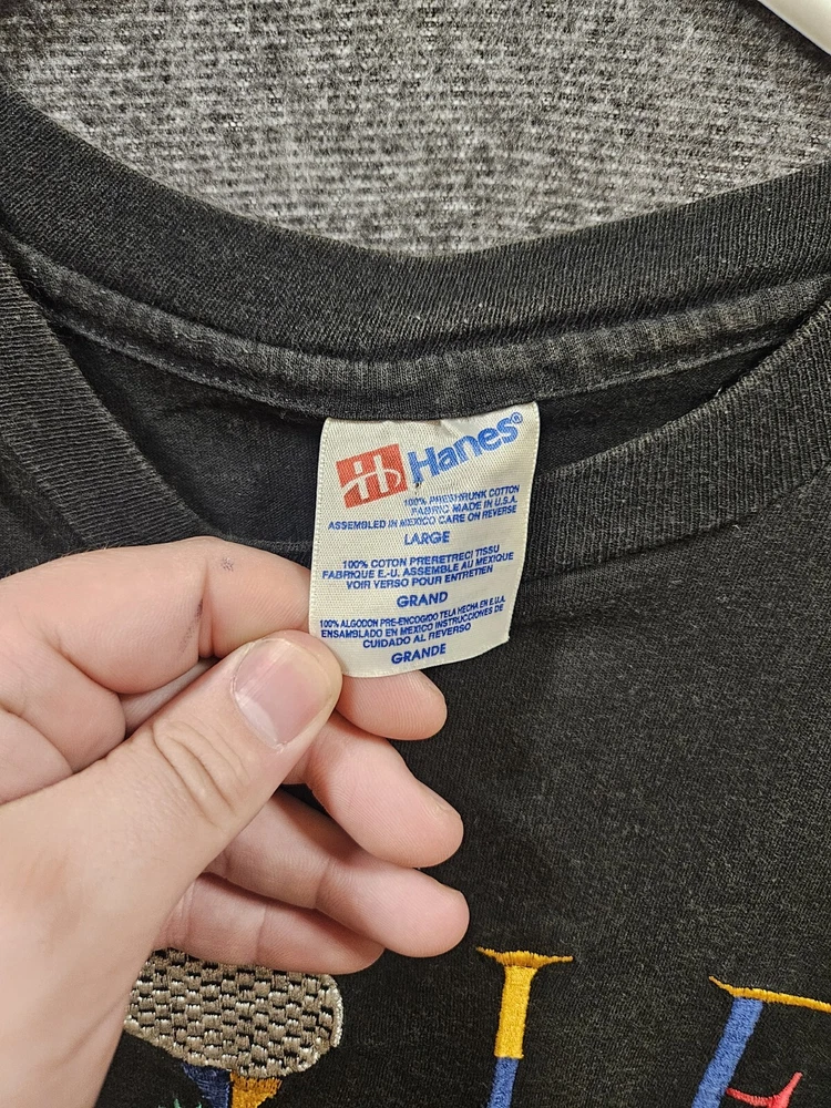Accents: Embroidered Country/Region of Manufacture: United States Size: L Fit: Regular Vintage: Yes Department: Men Theme: 90s, Funny, Sports Size Type: Regular Color: Black Type: T-Shirt Brand: Hanes Sleeve Length: Short Sleeve Neckline: Crew Neck