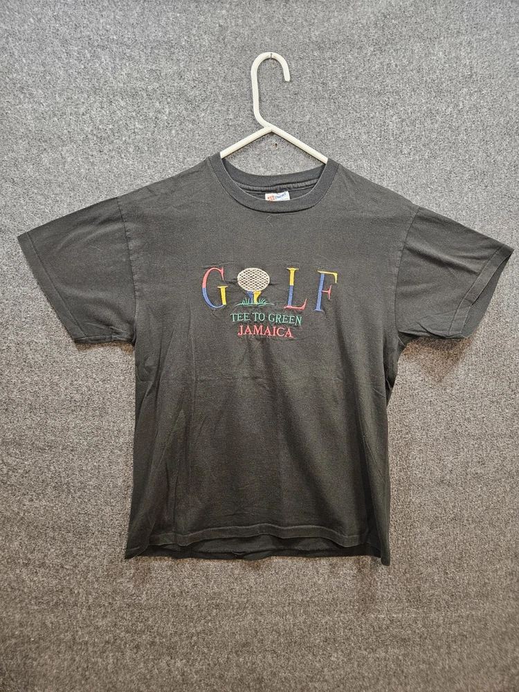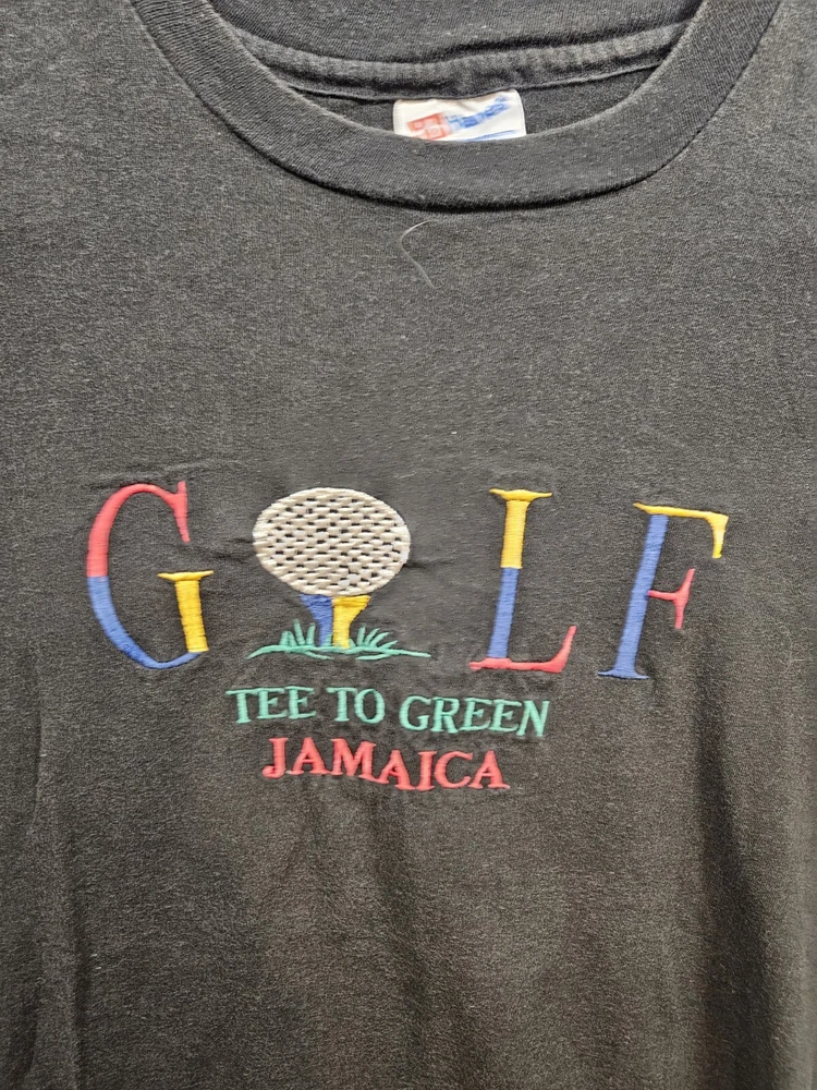 Vintage Embroided Black Golf T-Shirt 90s Jamaica Funny Single-Stitch Size LARGE