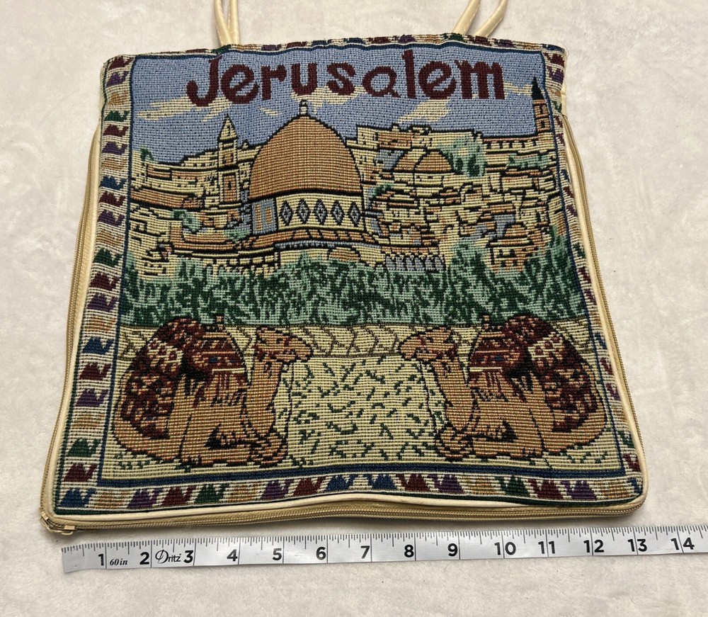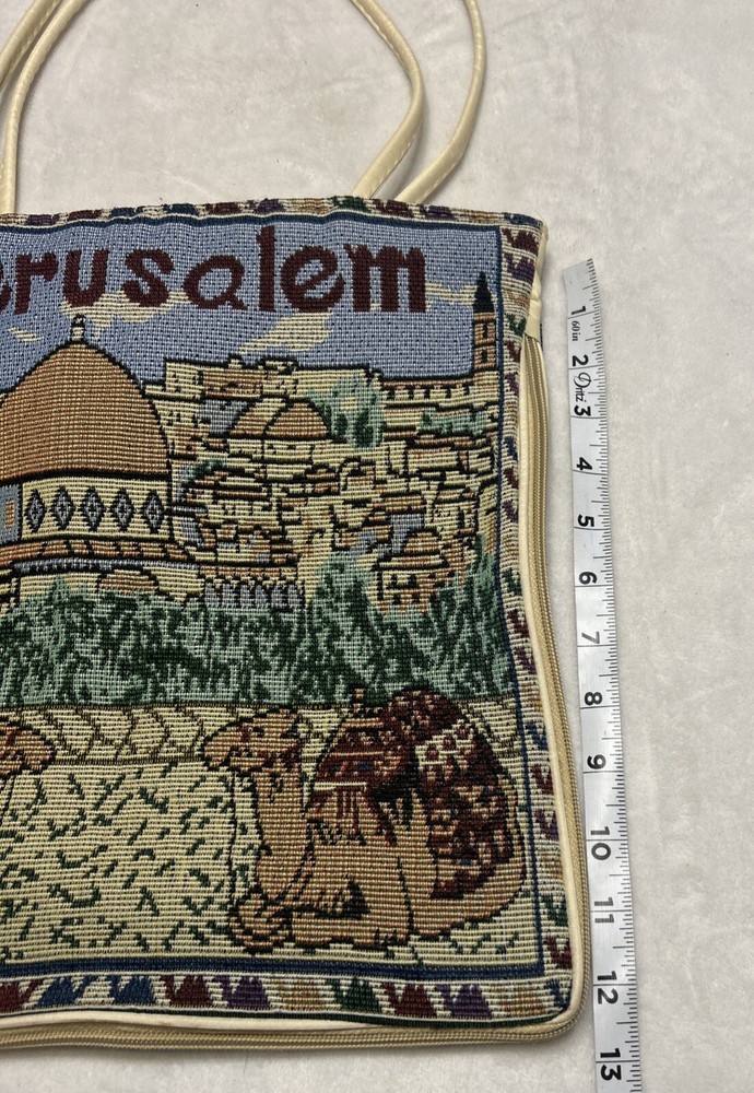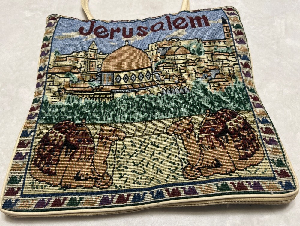 Vintage Embroidered Jerusalem Tote Bag Purse With Straps Zip Israel Palestine