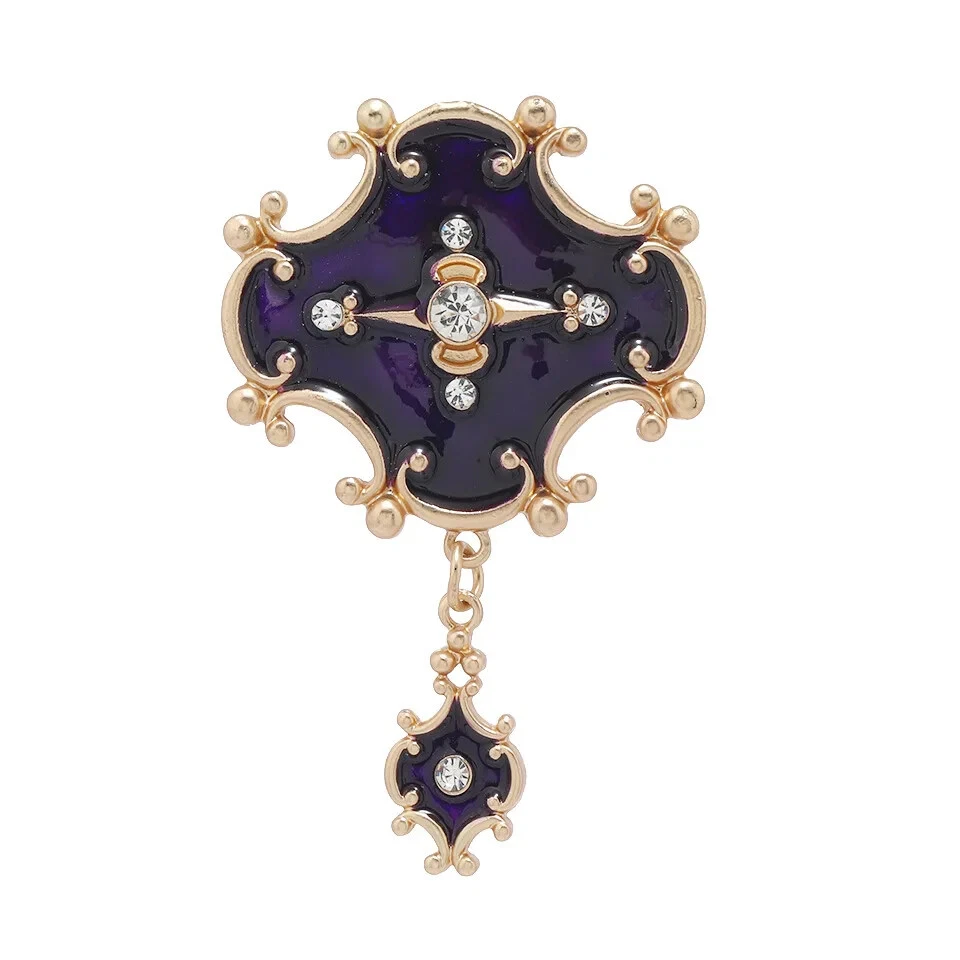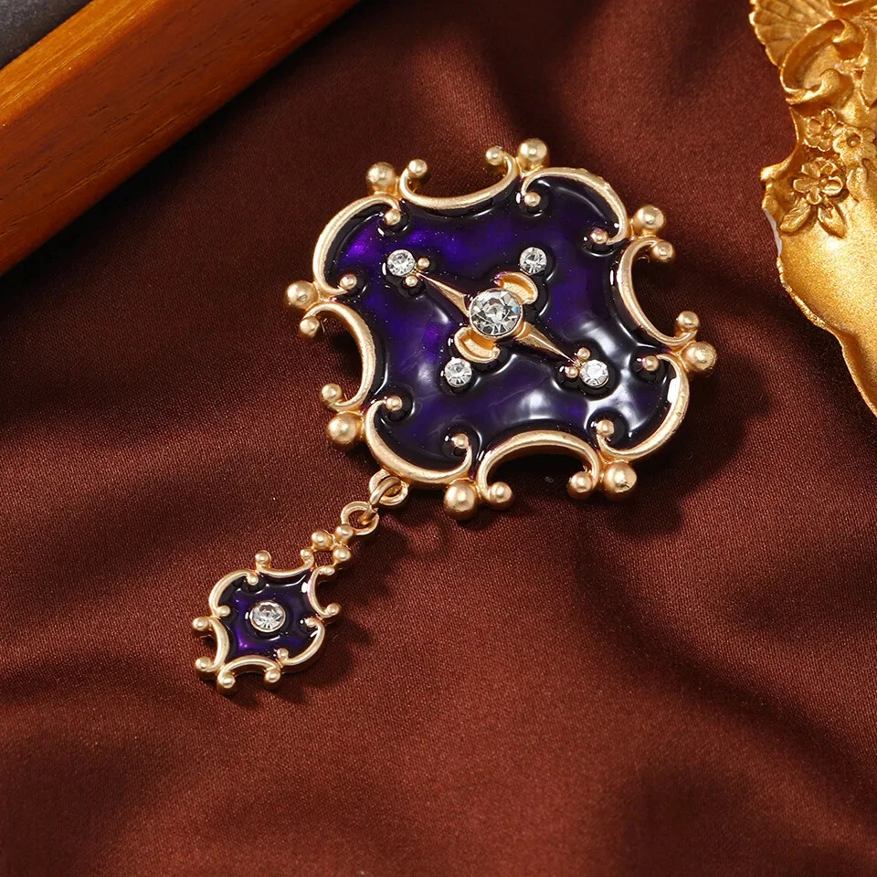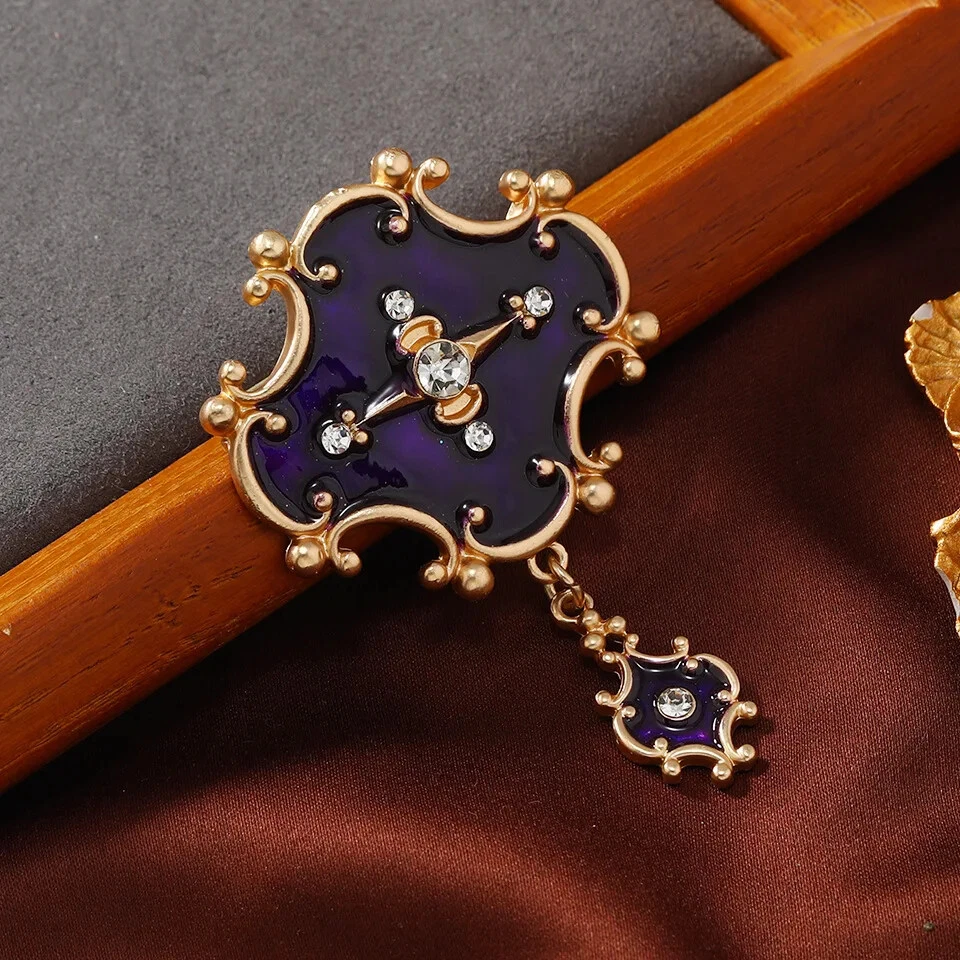 Vintage Enamel Brooch Antique Dark Blue Heavy Industry Rhinestone Accessories