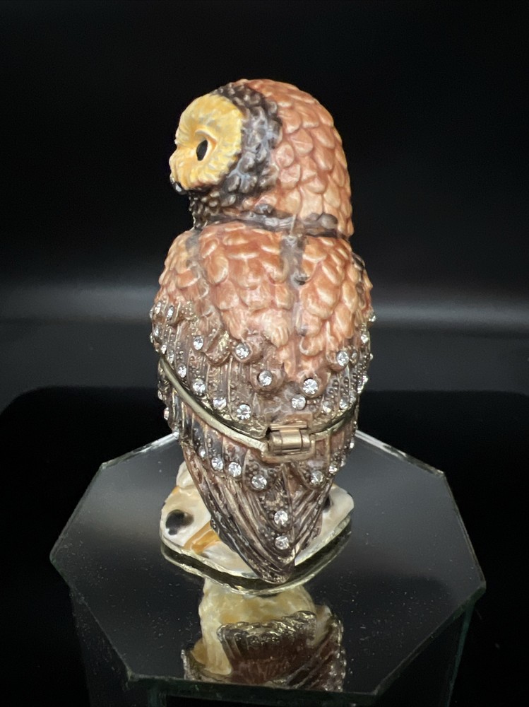 Vintage Enamel Metal Jeweled Owl Trinket Jewelry Box Magnet Closure