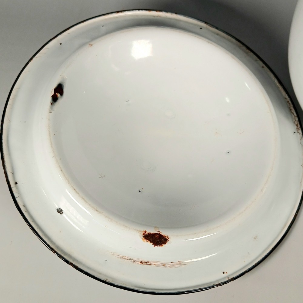 Rust patina and chips in the enamel. Please see listing photos for details and measurements. Ships USPS ground advantage mail. • Please feel free to contact me if you have questions on any of my items. • Buy with confidence! I pride myself in complete transparency with item descriptions and photos for your complete satisfaction. • Colors in listing photos may vary slightly due to your screen calibrations and settings. • Please ensure your shipping address is correct prior to payment for a smooth transaction. • All fragile items will always be packaged securely prior to shipping. • Visit 1SaltyOlive to view my current selection of items and if you like what you see please follow my store.