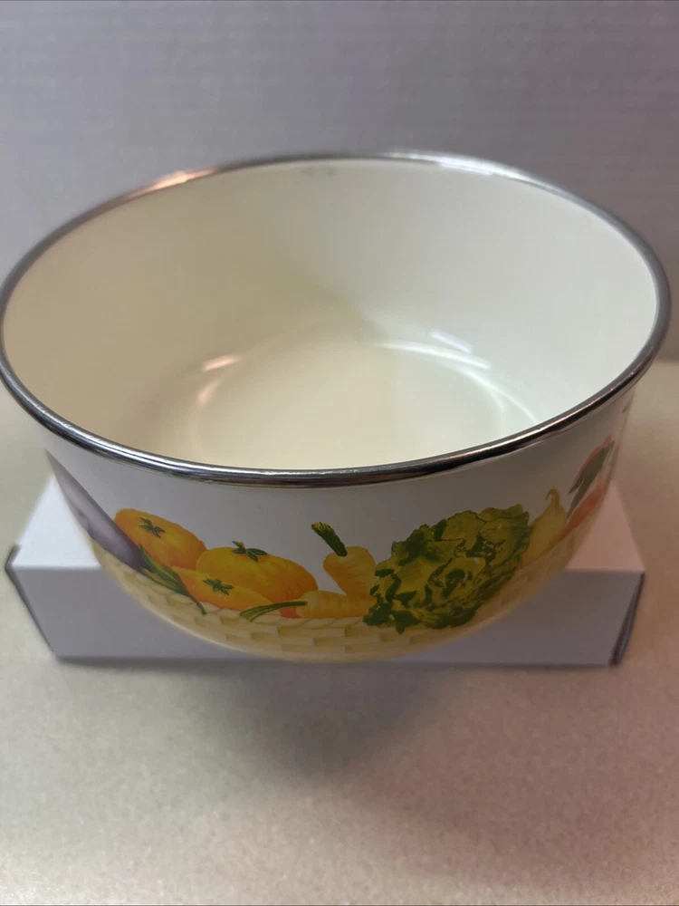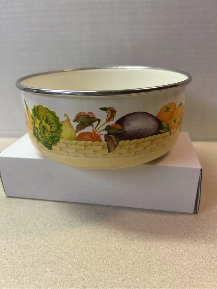 Vintage Enamelware Nesting Bowls Set of 2 Rare Vegetable Basket Pattern. Condition is Used. Shipped with USPS Ground Advantage.
