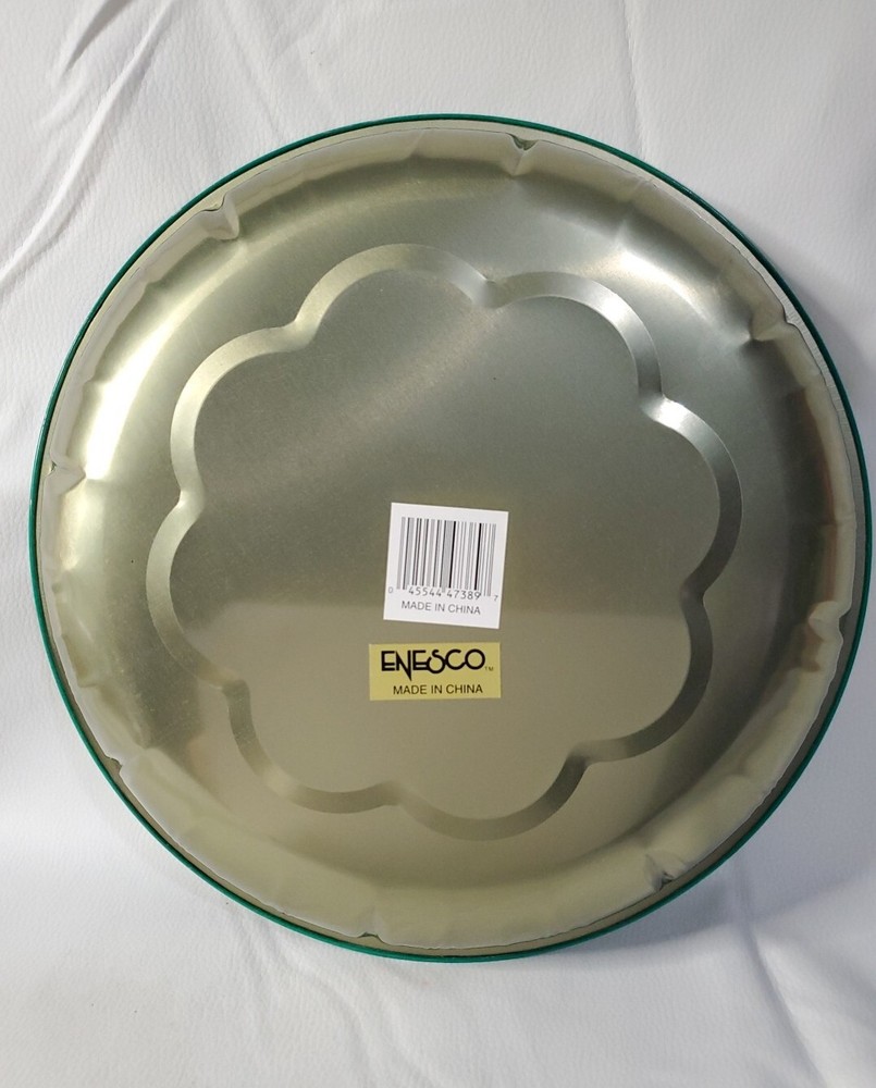 This vintage Enesco metal tray is a charming addition to any Easter collection. The tray features adorable ducks, a butterfly, and flowers in a cheerful green color. It was manufactured in China during the 1990s and is in excellent used condition (EUC). Perfect for displaying or serving Easter treats, this tray is made of durable metal and has a size of 10 inches. It is sure to delight collectors and fans of Easter-themed decor alike. Add this Enesco tray to your collection today!