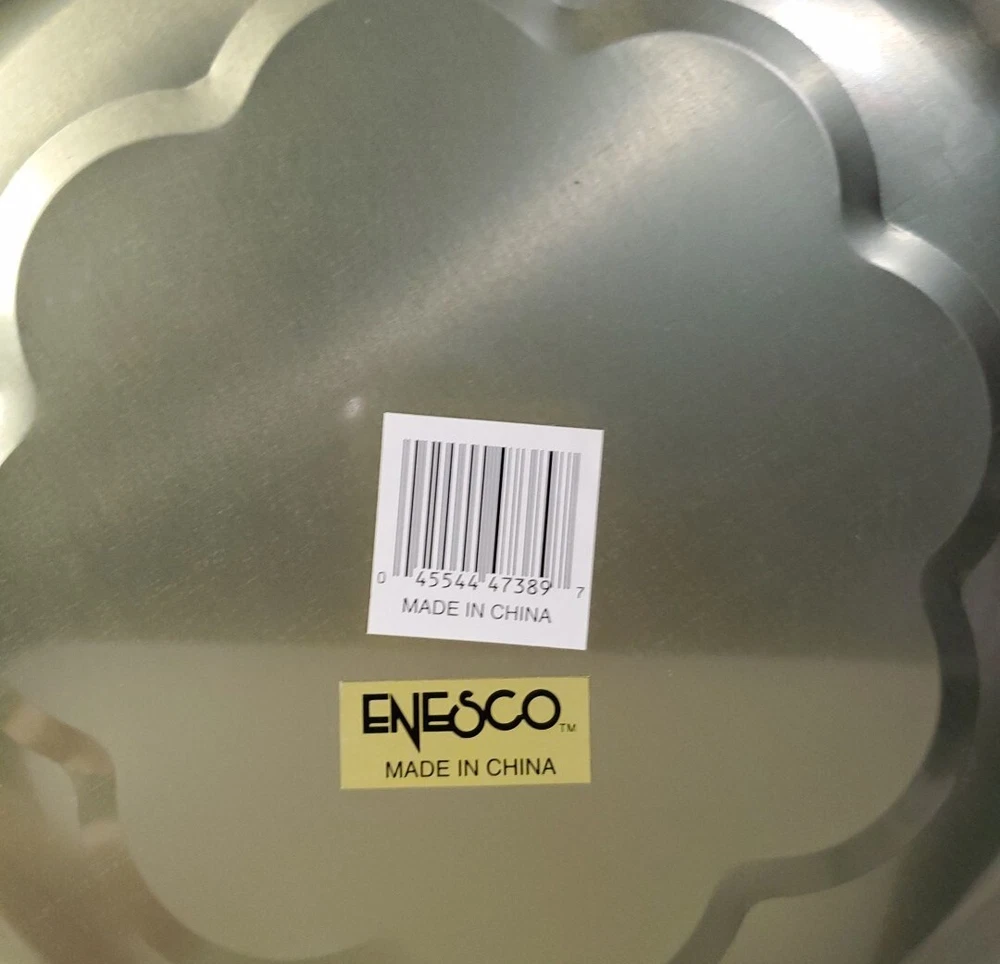 This vintage Enesco metal tray is a charming addition to any Easter collection. The tray features adorable ducks, a butterfly, and flowers in a cheerful green color. It was manufactured in China during the 1990s and is in excellent used condition (EUC). Perfect for displaying or serving Easter treats, this tray is made of durable metal and has a size of 10 inches. It is sure to delight collectors and fans of Easter-themed decor alike. Add this Enesco tray to your collection today!