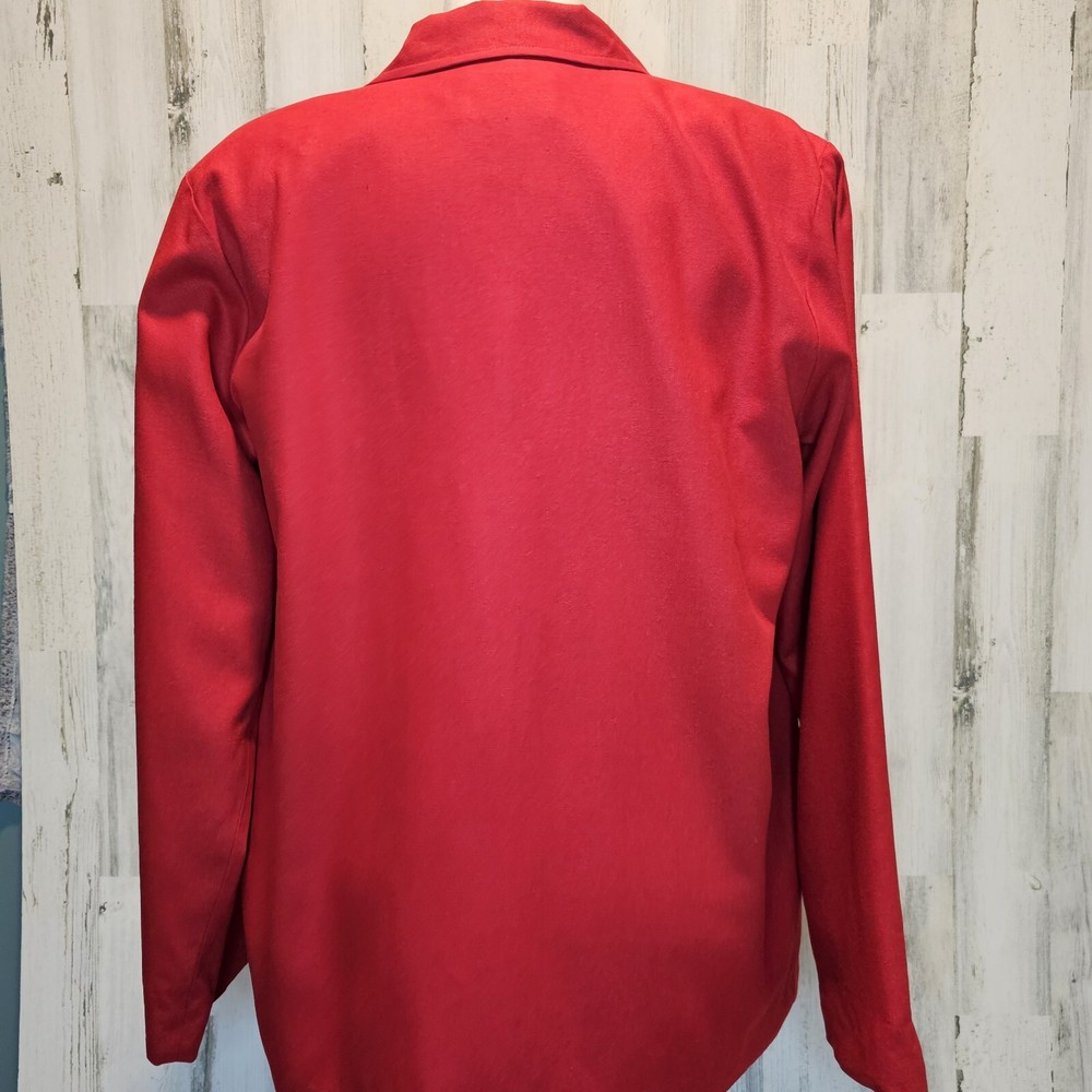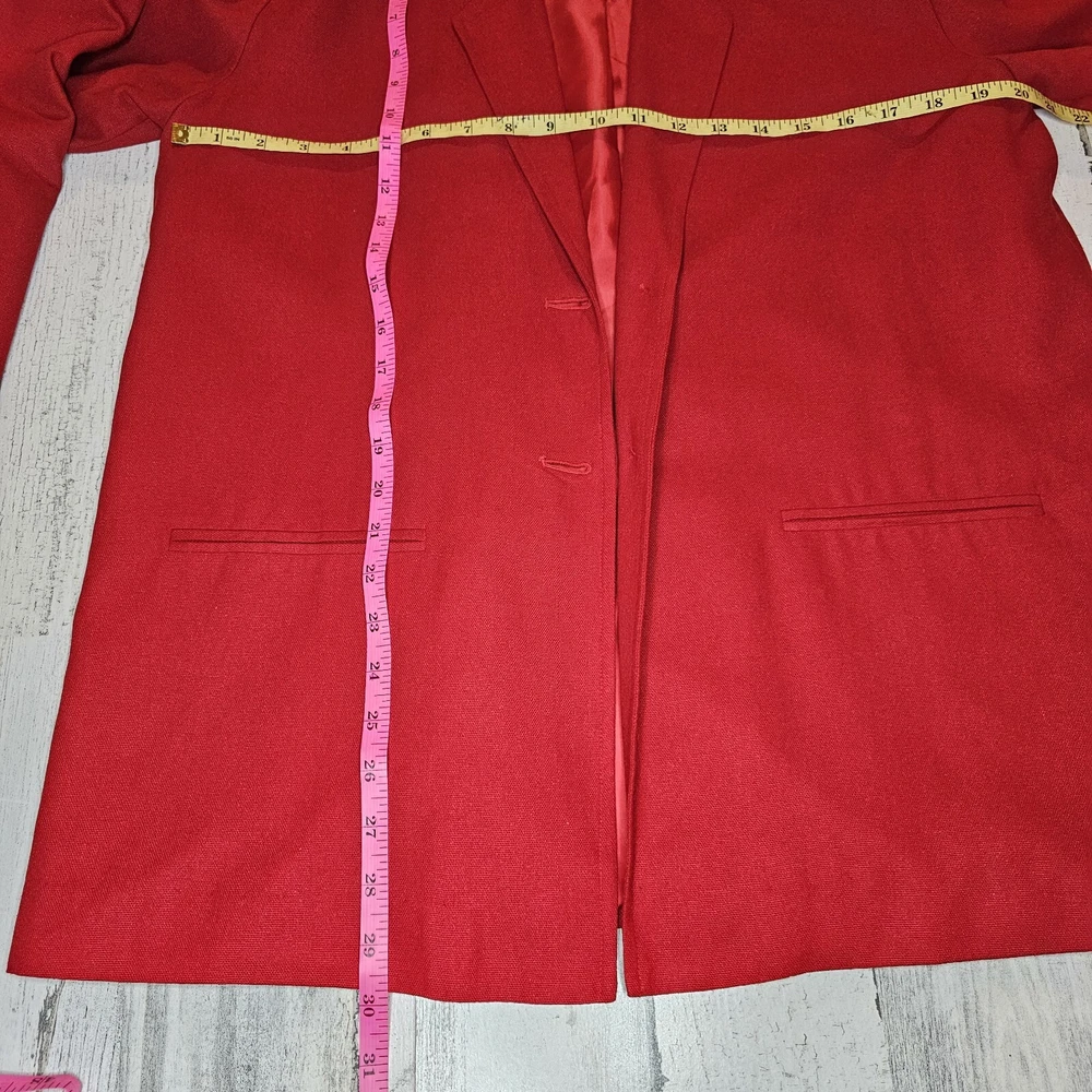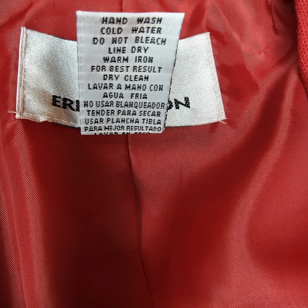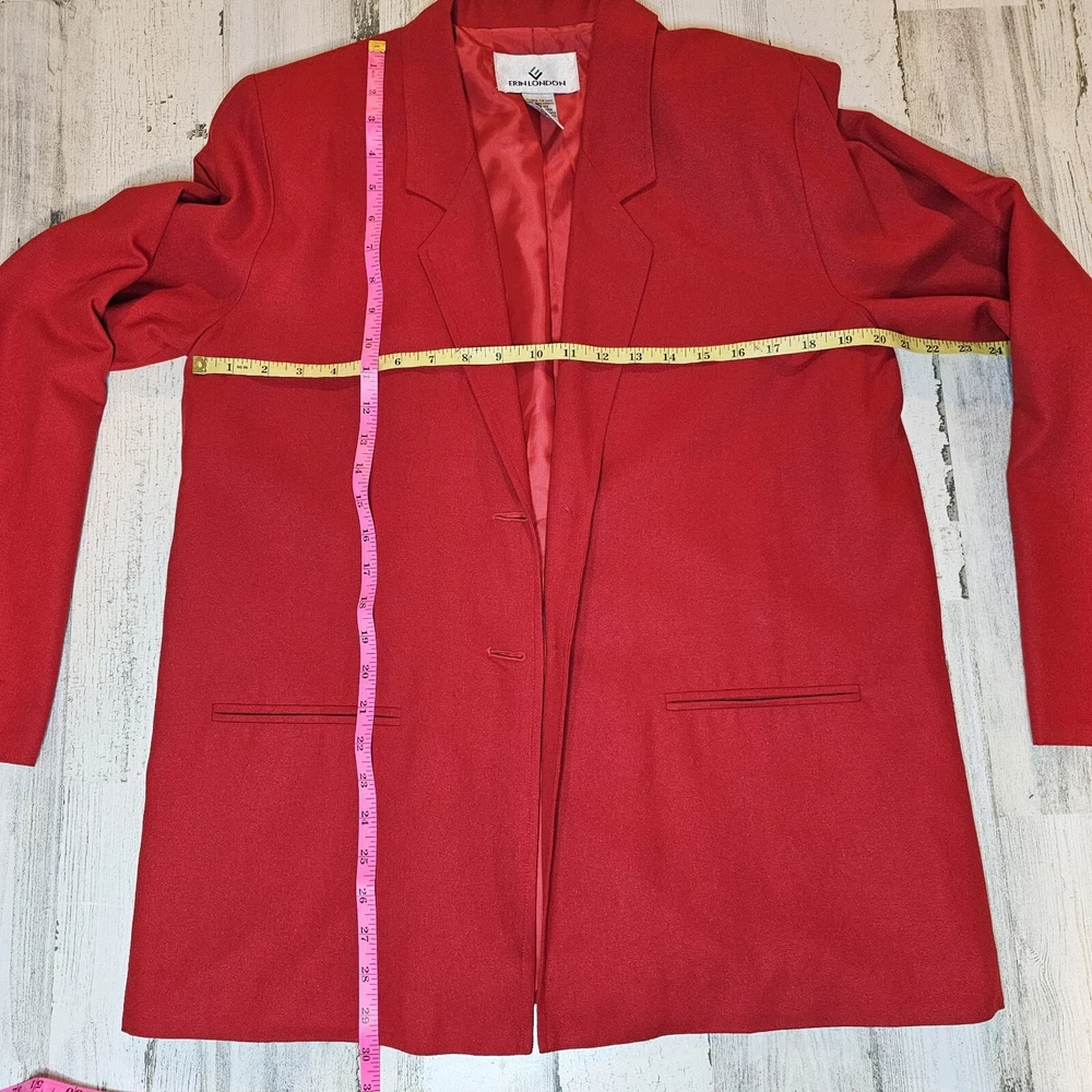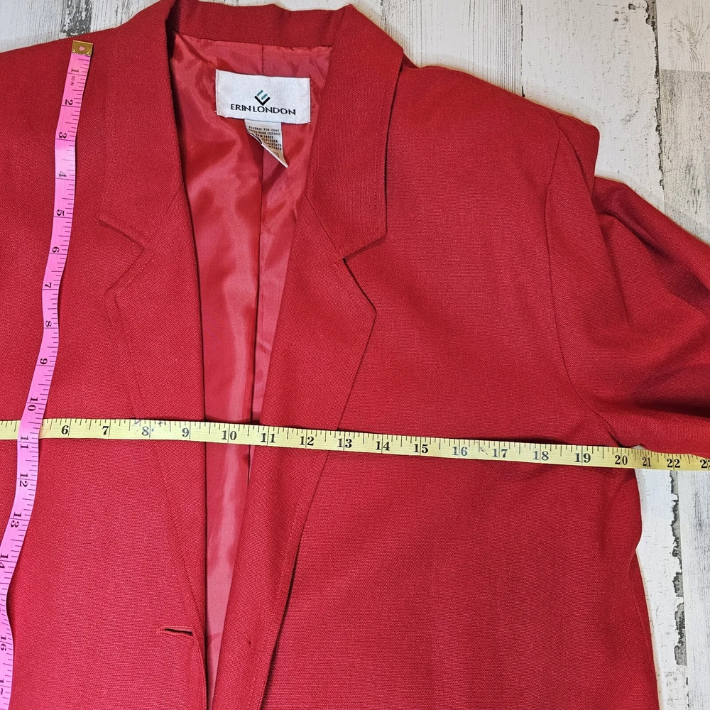 Step back in time with this vintage Erin London 100% Silk Blazer in a bold and timeless red. Perfect for collectors and those who appreciate classic vintage style, this blazer exudes sophistication and elegance. Brand: Erin London Size: Small (fits oversized, see measurements) Material: 100% Silk (Lining: 100% Acetate) Color: Red Features: Single-breasted design Notched lapel Fully lined Two front pockets Extra button included Made in: China This blazer is a classic piece of fashion history, ideal for pairing with modern or retro outfits. Whether for a vintage collection, casual wear, or professional settings, this Erin London blazer stands out. Measurements: Chest (pit to pit): Approx. 20 inches Length (shoulder to hem): Approx. 29.5 inches Sleeve (shoulder to cuff): Approx. 24 inches Condition: This vintage blazer is in excellent pre-owned condition with no noticeable flaws. Please review all photos carefully for details. #VintageFashion #RetroBlazer #ClassicStyle #ErinLondon #100SilkBlazer #TimelessChic #BoldRedJacket