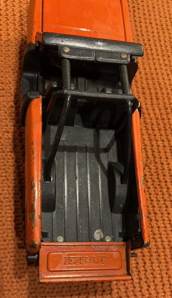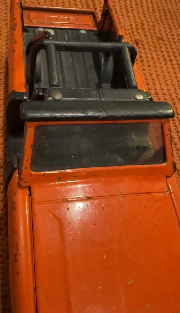 Item is used it has wear, fade, discoloration, scratches,marks, dents, rust, back of trucks trunk doesn’t stay fully latched in upright position well, or other possible signs of use/play. See measurements for sizing reference. Sold as is no returns.