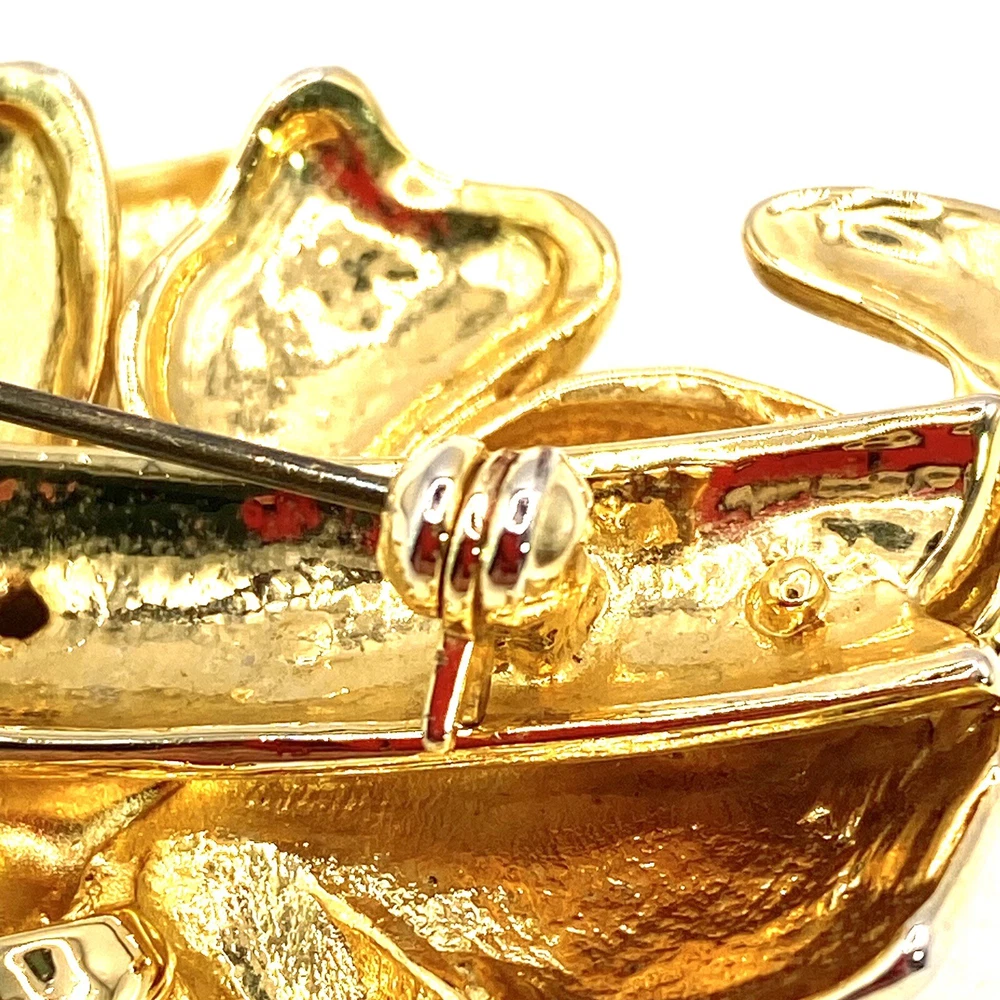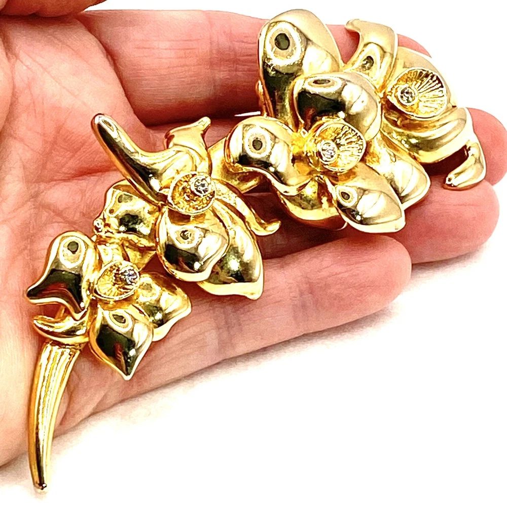 This vintage Estate brooch is a stunning piece of jewelry that will make a statement in any collection. The intricate design features delicate flowers and lilies, with sparkling crystals that catch the light beautifully. Measuring at 4 inches in length, this brooch is perfect for any occasion, whether it be a special event like a wedding or graduation, or an everyday accessory. The piece is made of gold-tone metal and has a beautiful brilliance cut to the crystals. The brooch is eye-clean and has excellent cut grade. The Estate brooch is a perfect addition to any fashion jewelry collection and is sure to impress. This brooch is in excellent condition! This is a pre-owned piece. It may cleaning. There may be scratching, chips, normal weavr, missing stones, etc… See Photos. If you have any questions, please feel free to contact me via eBay messaging. Thank you for stopping by. Make sure to check out other items in my store. Your satisfaction is my priority! Have a wonderfully blessed day!. Your satisfaction is my priority! Have a wonderfully blessed day!