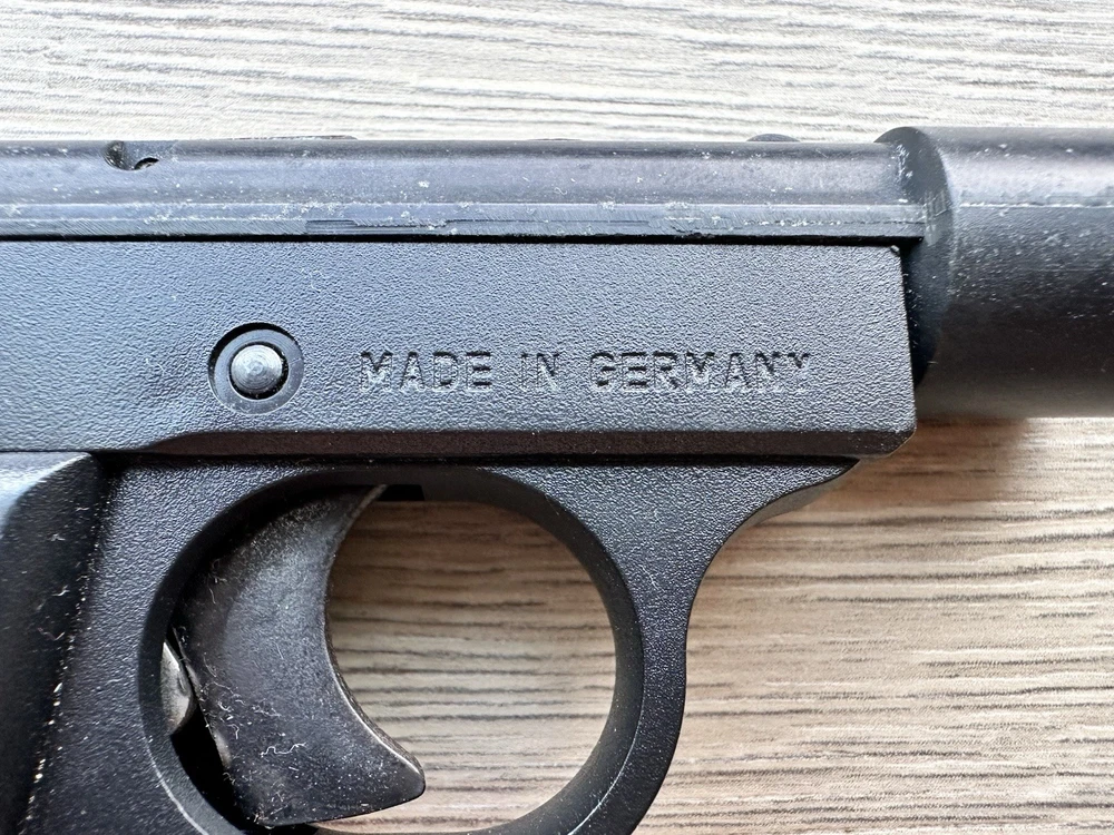 Excellent condition, The Record Weinberg 6mm Signal Pistol, a compact, single-shot launcher designed in Germany. It is commonly used as a starter pistol for sporting events, for wildlife control, or as a signal and animal deterrent device during outdoor activities. Key Specifications and Features Model Name: Record Weinberg (sometimes referred to as the "Bird Bomb" shooter). Caliber: 6mm (.22 blank) crimped cartridges. Function: It utilizes the energy from a 6mm blank to launch 15mm pyrotechnic projectiles, such as signal flares, whistle cartridges, or explosive "bird bombs". Design: It features a single-shot mechanism with a plastic grip and a 15mm launcher cup integrated into or attached to the barrel. Markings: The pistol is marked with "FB Record," "Cal. 6mm," and "Weinberg u. Signal Pistole". It also bears the "PTB 113" mark, which is a German technical certification. Feel free to ask any questions about the item. You may have. Please see the photos for your best judgment. The item pictured is the one you will receive.