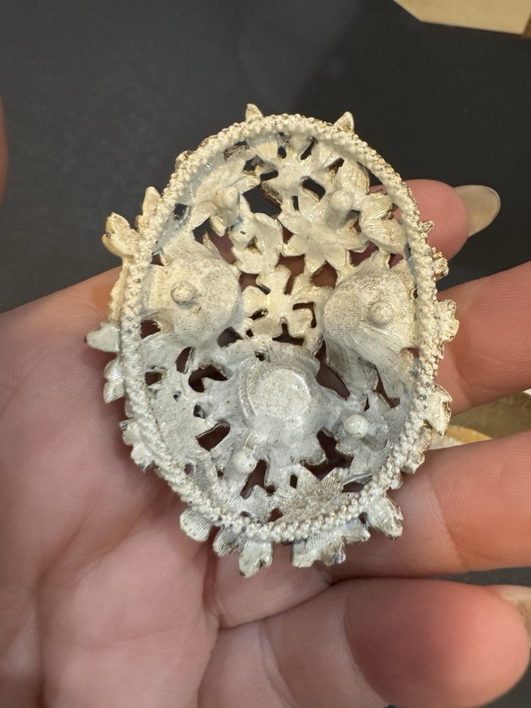 The brooch exceeded expectations and is even more impressive than depicted in the photos. The item description was accurate, and it arrived promptly in secure packaging, ensuring a safe arrival. The transaction was seamless. Highly recommended eBay seller.
