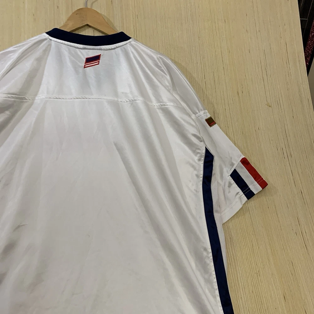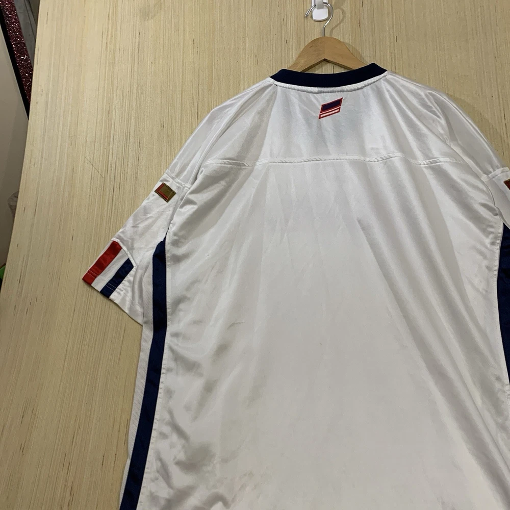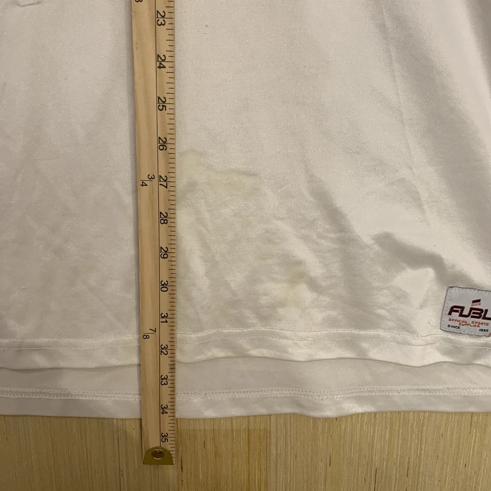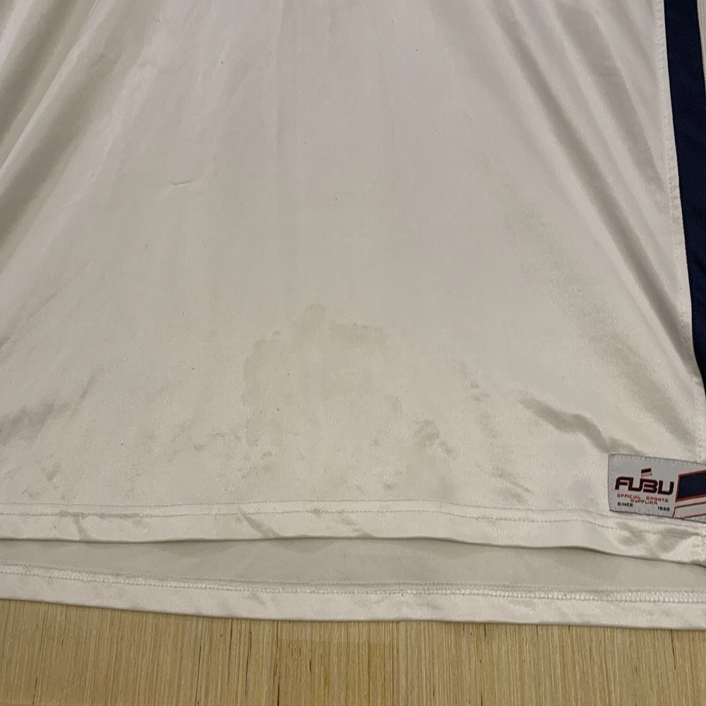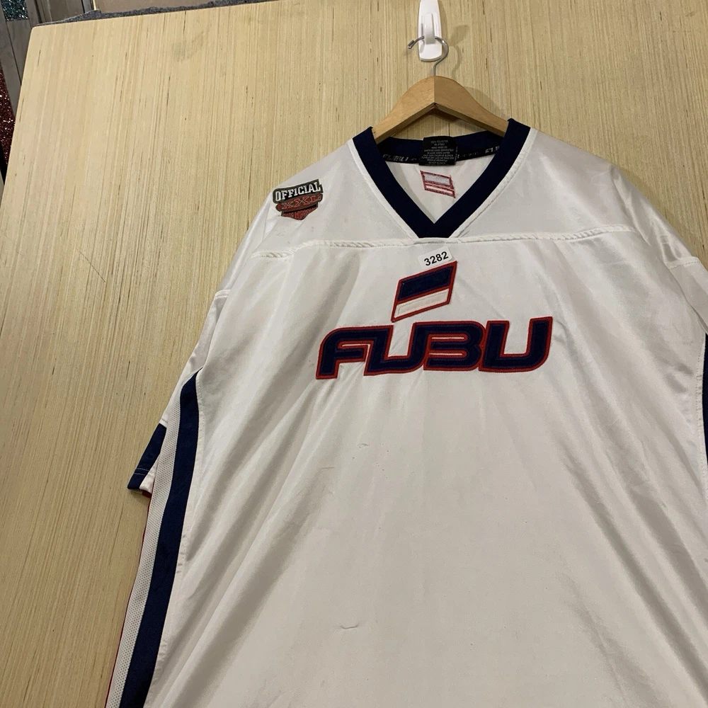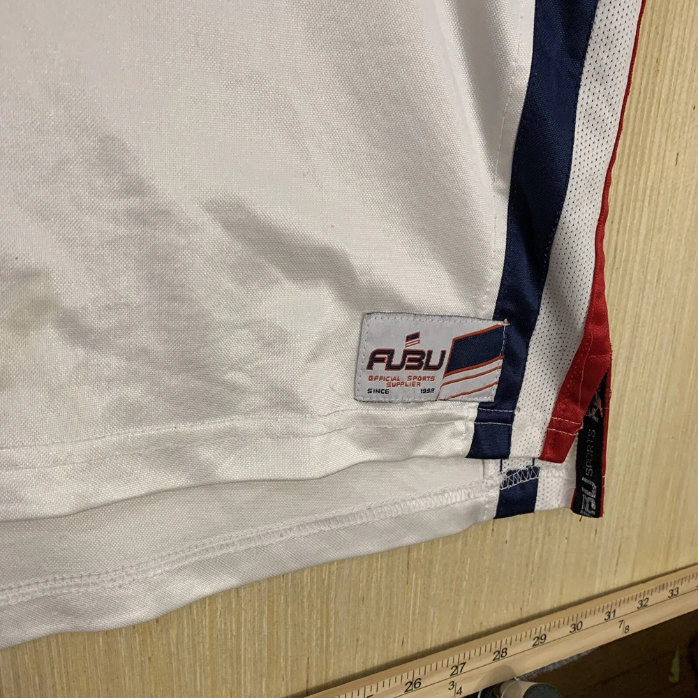 This vintage FUBU jersey is a must-have for any 90s football fan. The white cotton material with a solid pattern and short sleeves is perfect for a casual look. It features a crew neck and a regular size type for men. The jersey is made of high-quality cotton fabric, ensuring comfort and durability. The FUBU brand adds a touch of style to this classic piece. Get ready to show off your love for football with this iconic jersey.