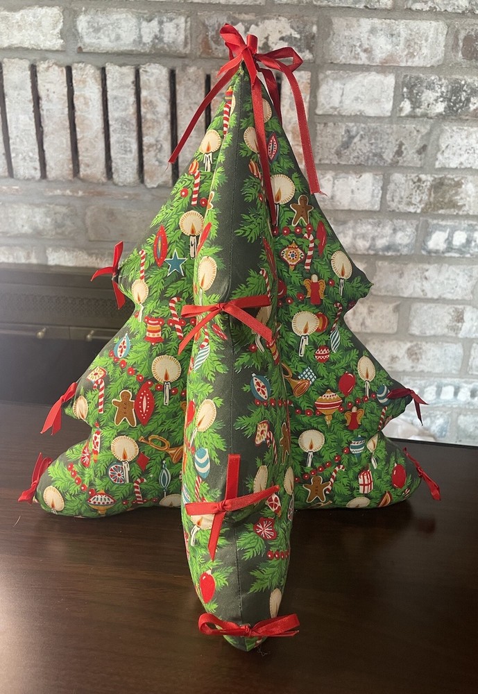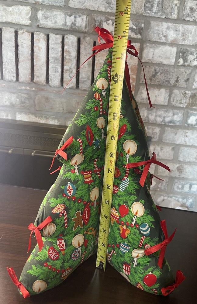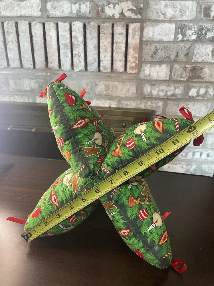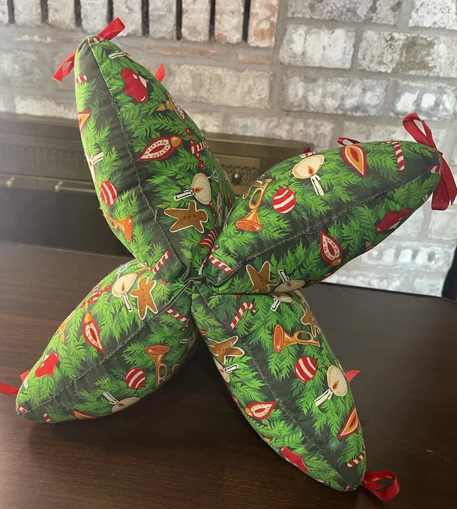 Vintage Fabric Christmas Tree Decor Plush Struggled 4 Sections Red Green 14x12