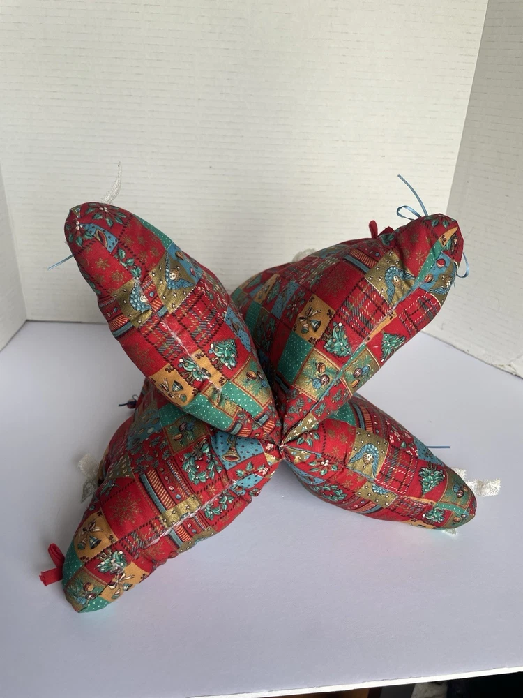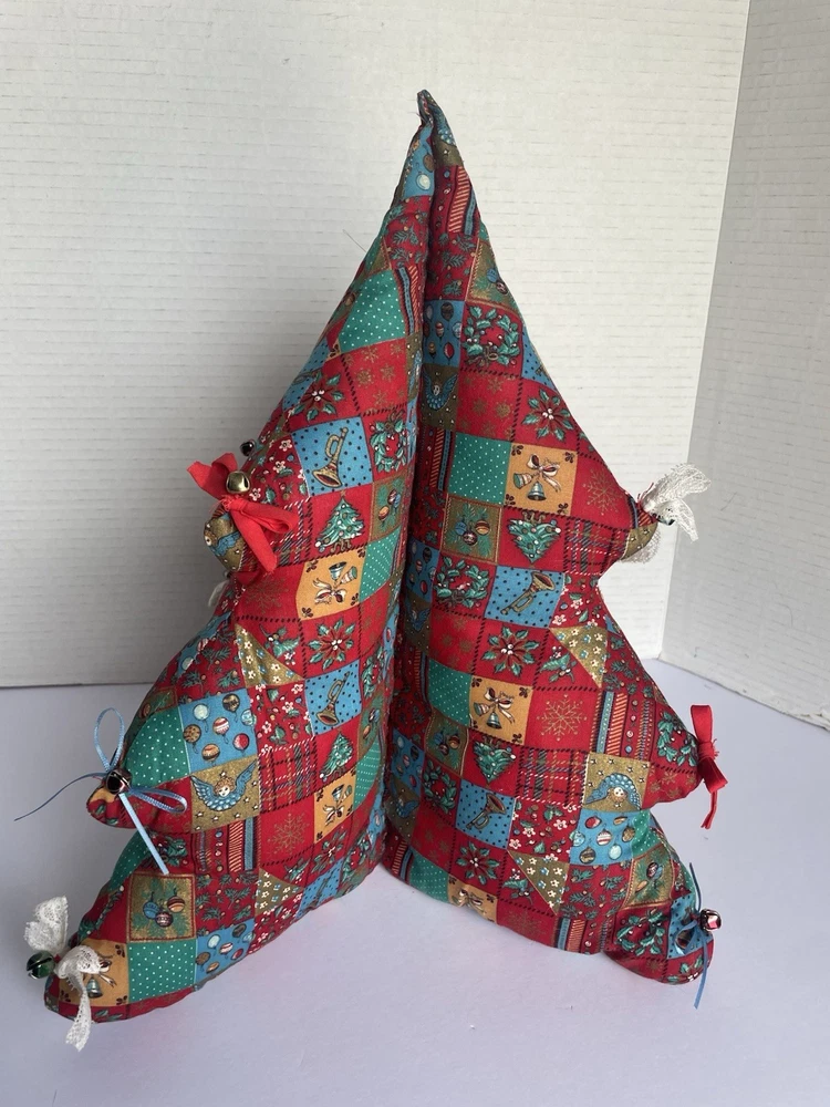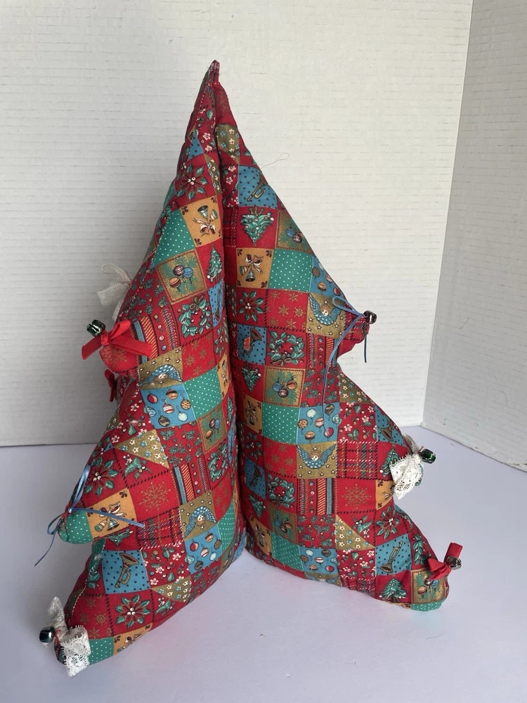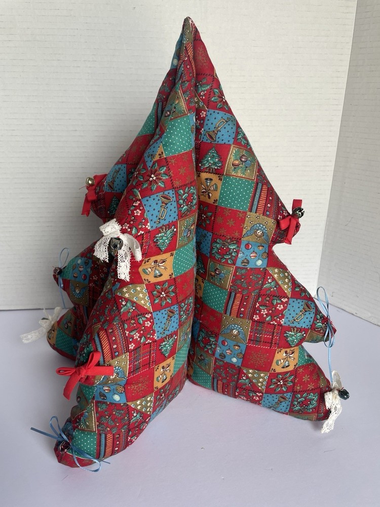 Vintage Fabric Christmas Tree Decor Plush Struggled 4 Sections Red Green 14x12. Condition is Used. Shipped with USPS Ground Advantage.