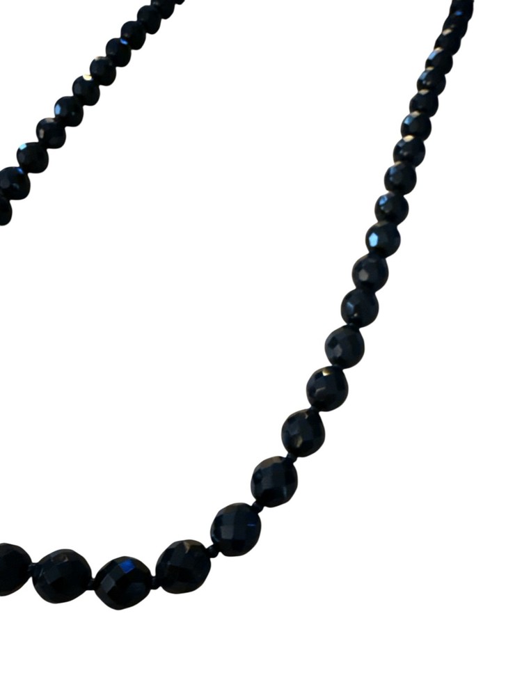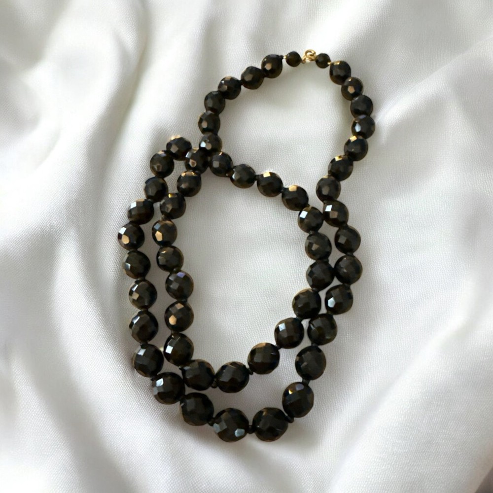 Vintage Faceted Black Glass Bead Necklace Classic Elegant Strand