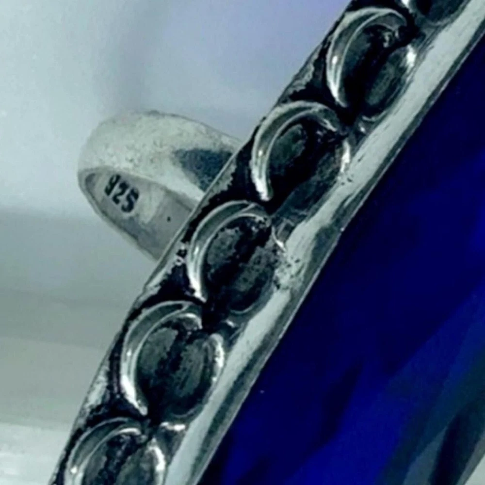 Elevate your jewelry collection with this stunning vintage cocktail ring. The oval-shaped lab-created blue sapphire stone is set in sterling silver with a bezel setting style. This ring is perfect for any occasion, including engagement, Mother's Day, Christmas, anniversary, birthday, or Valentine's Day. The vintage style of this ring adds a touch of elegance and sophistication to any outfit. This ring is a one-of-a-kind piece with a ring size of 8 and is made in India. The metal purity of this ring is 900, and it is perfect for those who love band style rings. This ring is a must-have for any jewelry enthusiast and is sure to make a statement. Size 8 * From my own personal collection Stamped .925 Sterling Silver It's gorgeous and can be worn day or night. Great staple to any jewelry collection. Stones created in a lab are chemically & optically identical to those mined underground, but they have few flaws, a lighter carbon footprint, and are less expensive. The surface of a faceted gemstone is cut and polished into many small, flat facets that amplify light reflection. Faceted gemstones are often used in jewelry and are ideal for creating a classic, elegant look.