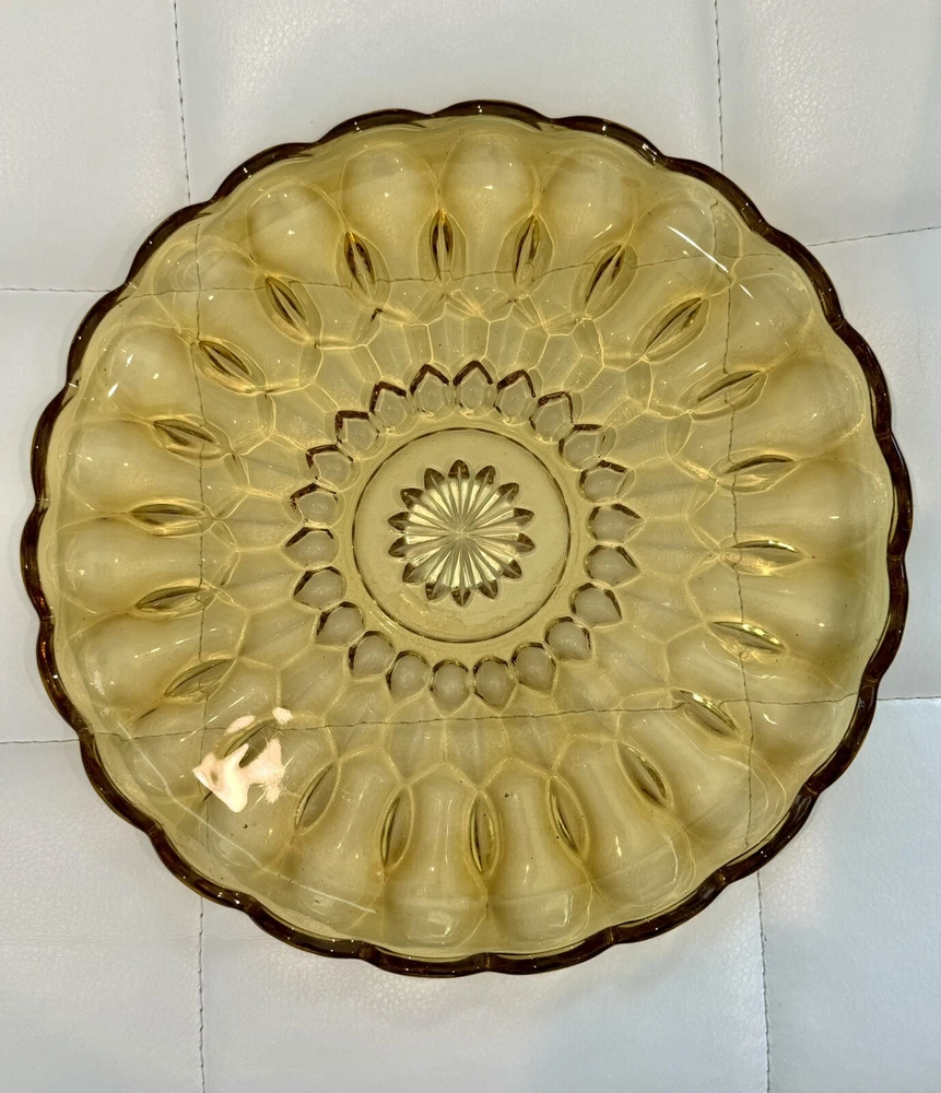 Fairfield Amber by ANCHOR HOCKING Glass 10" Dinner Plate Floral Flower Platter MCM Vintage Vtg Pre owned in great condition No chips or cracks Colors may appear different depending on screen or monitor viewed on.