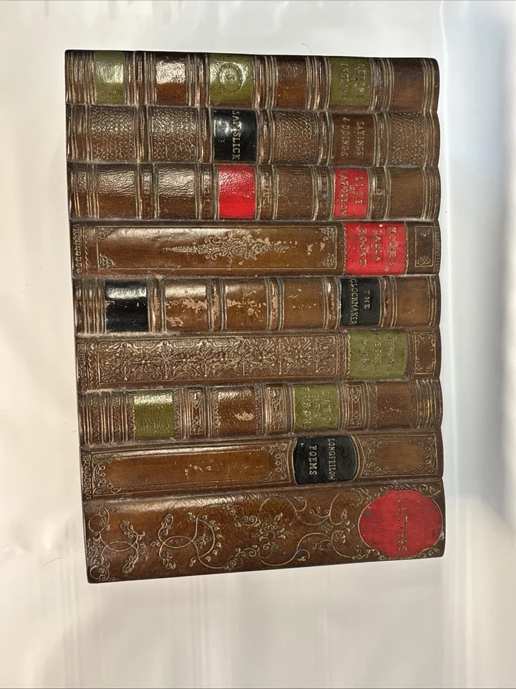 The Vintage Faux Book Spine Box with a rare Firestone top is a unique and charming decorative collectible item. Made of Firestone pottery and wood, this Victorian-style piece showcases a beautifully crafted design that adds a touch of elegance to any space. The boxed feature adds an extra element of interest, making it a standout piece for collectors or those who appreciate vintage decor.