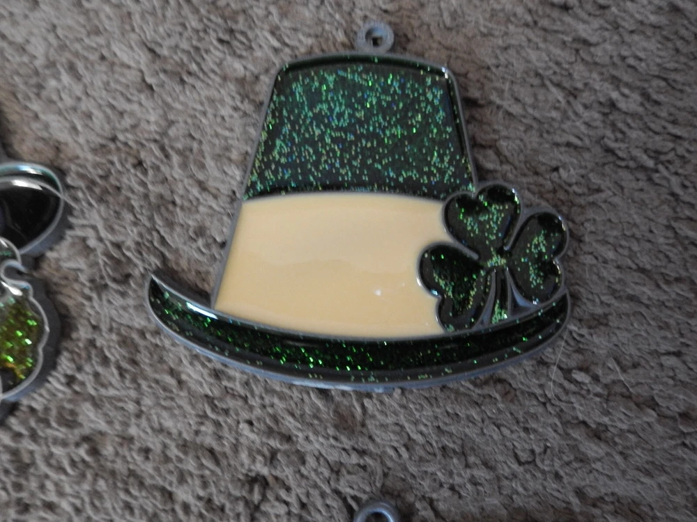 Vintage Faux Stained Glass Ornaments Irish Theme Plastic Sun Catchers Lot of 4