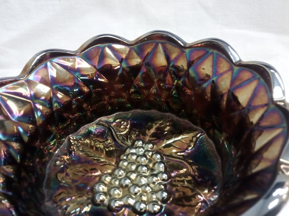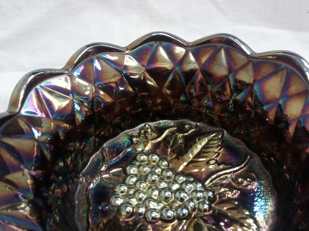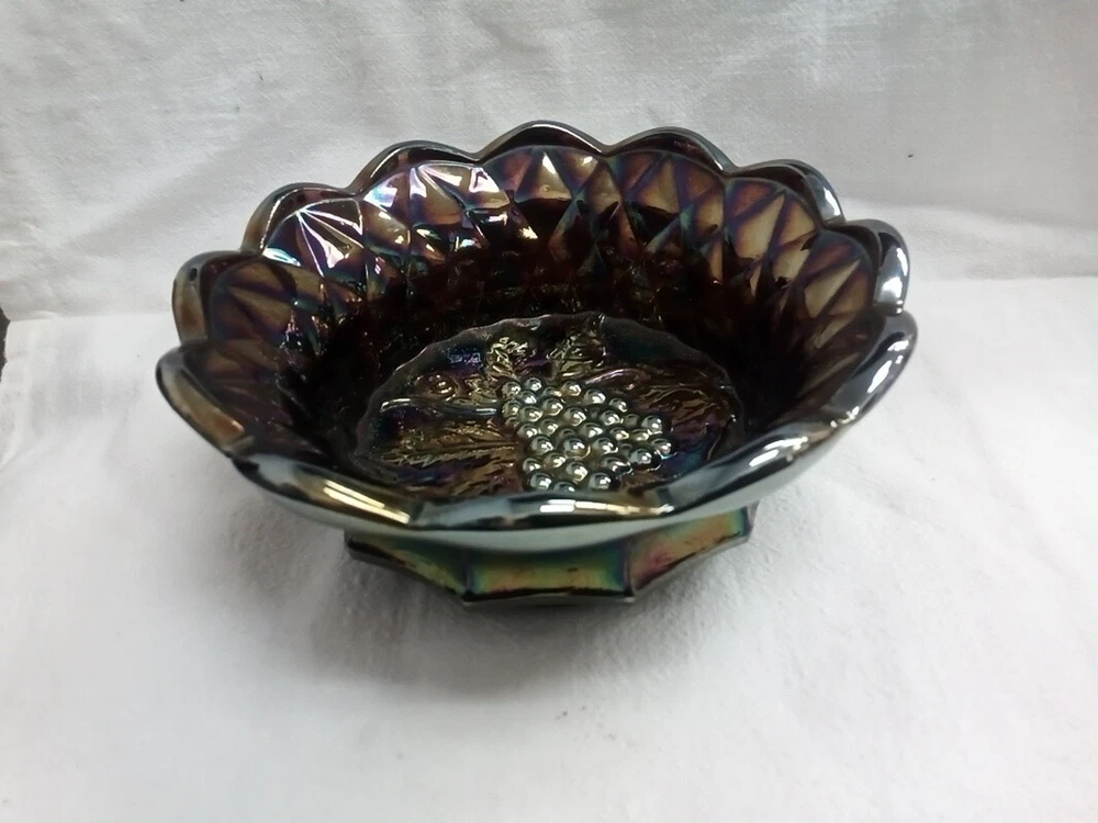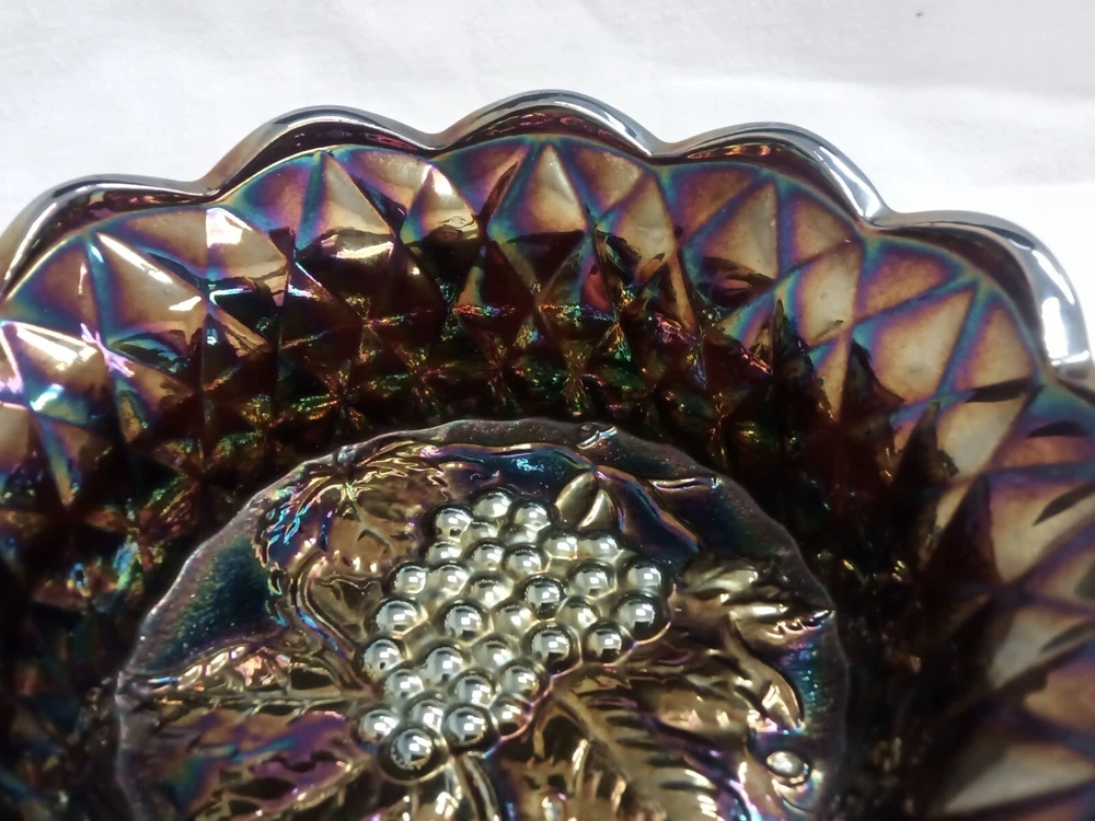 Time Period Manufactured:Contemporary (1940-Now)Country/Region of Manufacture:United StatesFinish:GlossyHandmade:NoMaterial:GlassPattern:VintageColor:CarnivalBackstamp:ImpressedOriginal/Reproduction:Vintage OriginalType:BowlBrand:FentonSeller Notes:“Like new”Vintage:YesStyle:ContemporaryAntique:NoShape:RoundProduction Style:Carnival GlassGlassmaking Technique:FusedOrigin:North America
