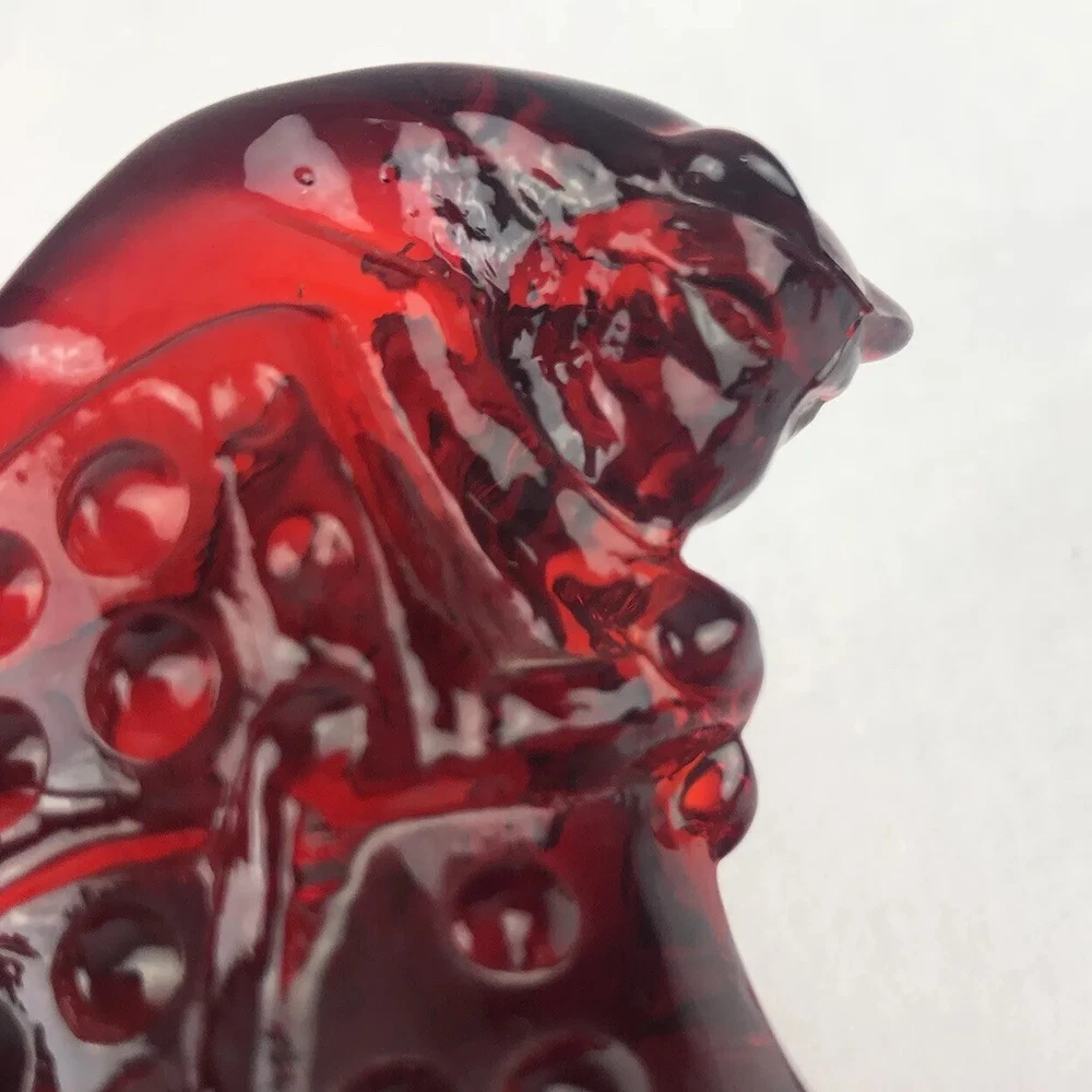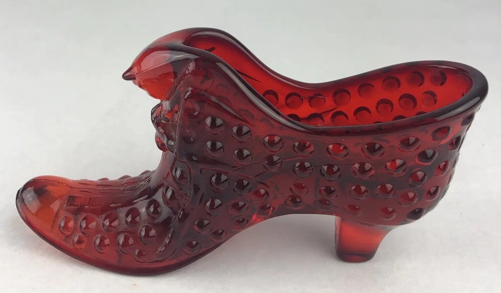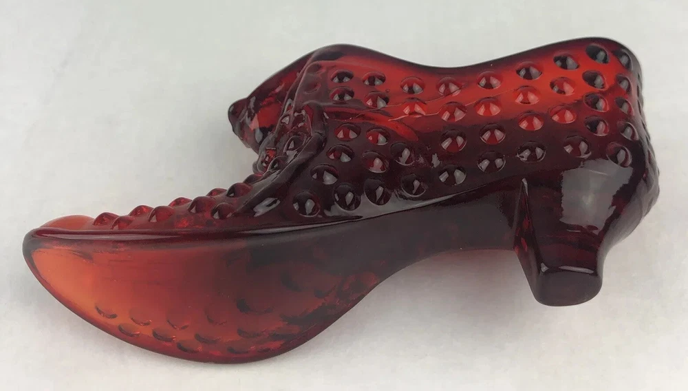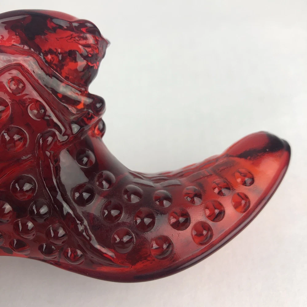 Vintage Fenton Cat Head Slipper ~ Beautiful Ruby Red Hobnail Glass No impressed logo ~ no sticker Measures approx: 3" tall x 5.5" long x 1.5" wide.