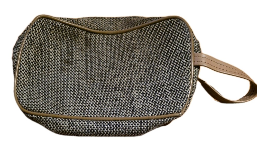 Vintage Fifth Avenue Toiletry Bag Brown Tweed Dopp Kit Travel Top Zipper