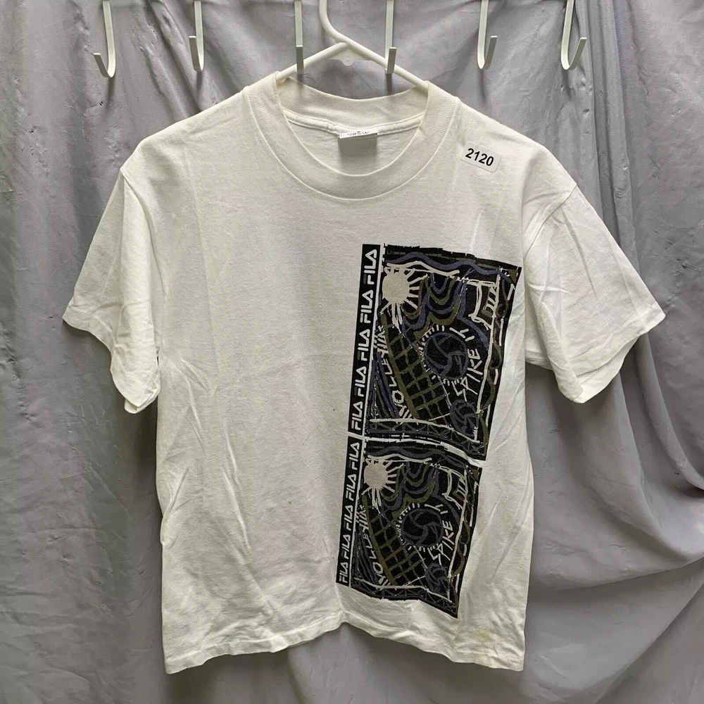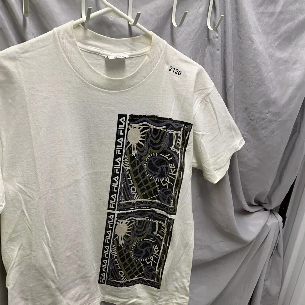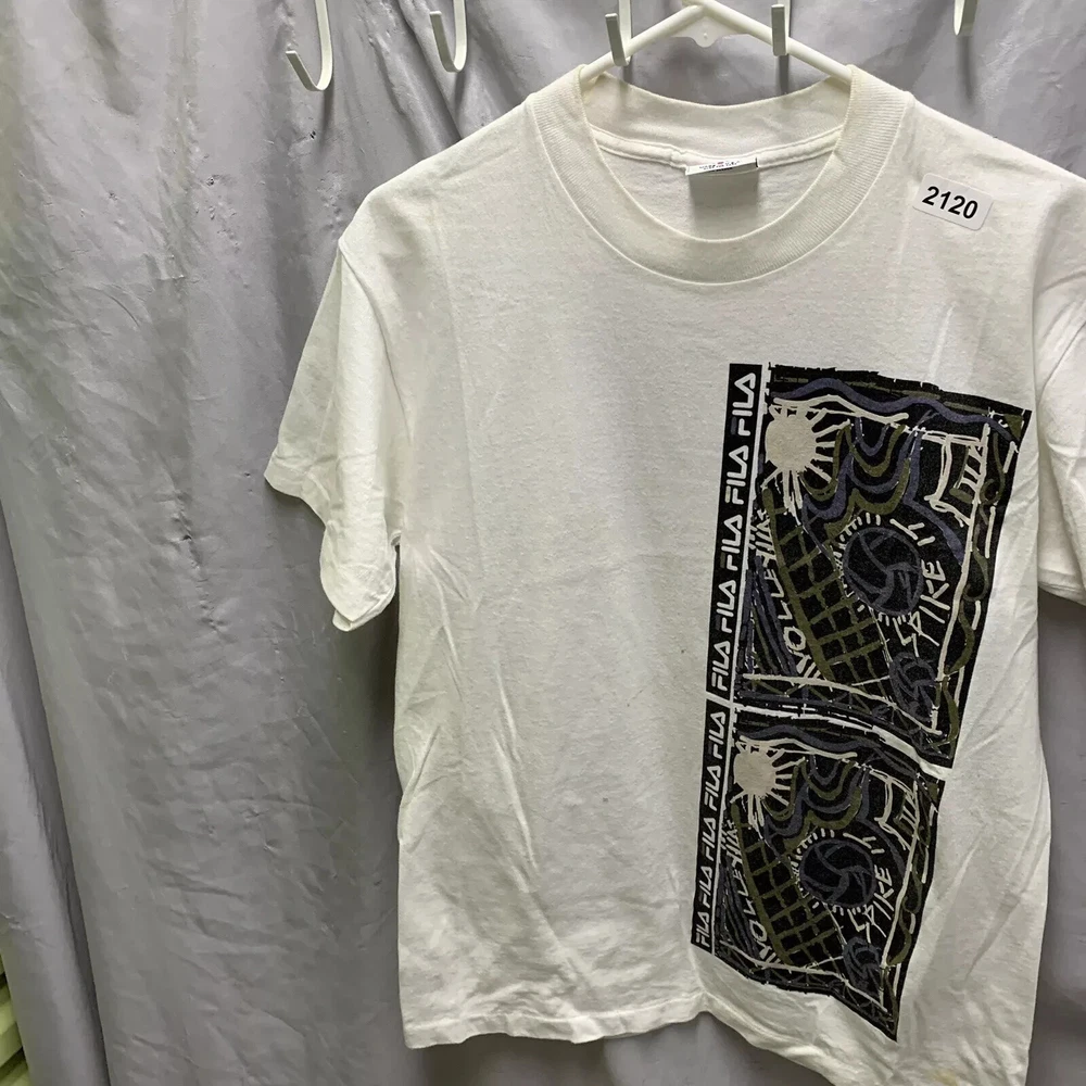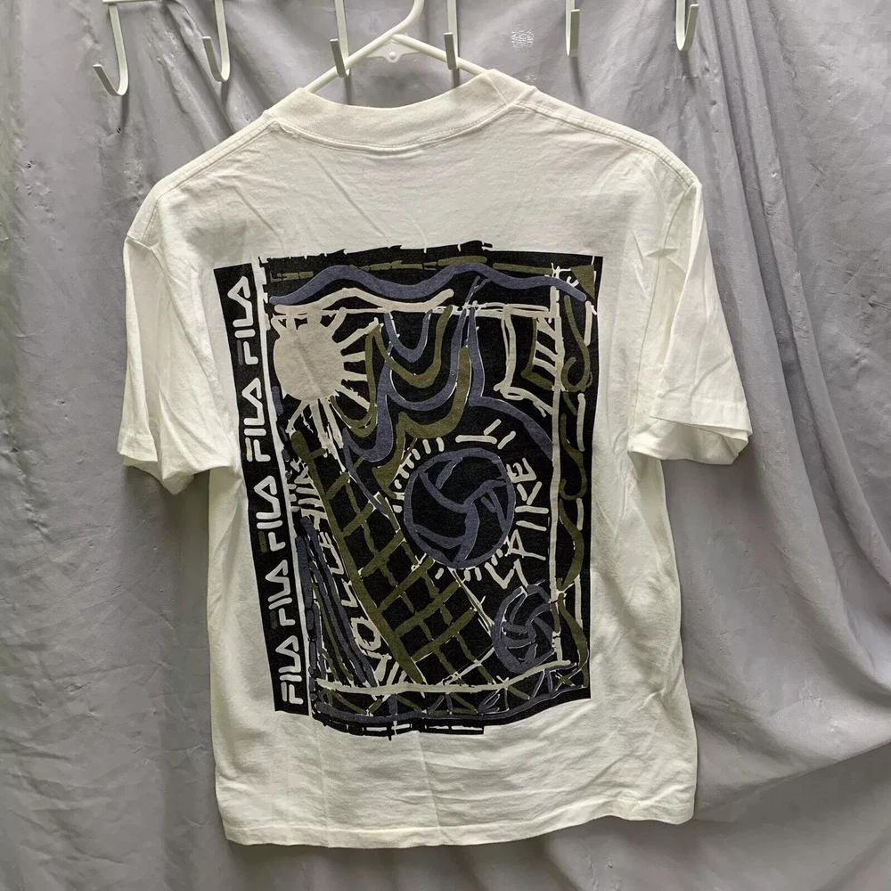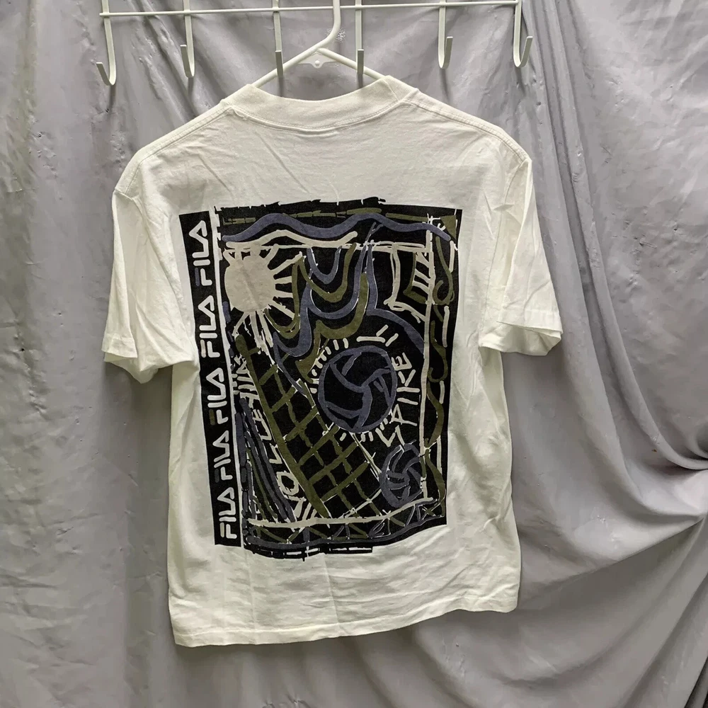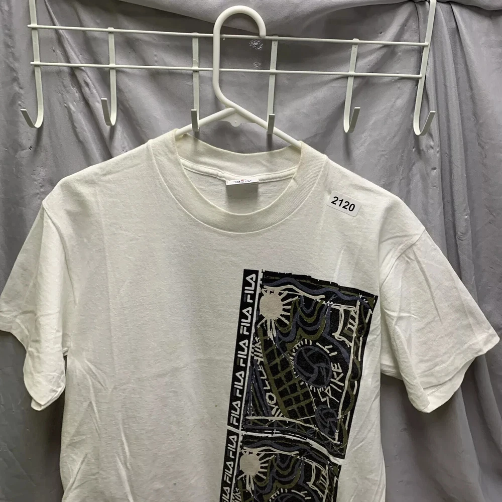 Vintage Fila Shirt Adult Small White Short Sleeve Graphic Print 90s Men’s