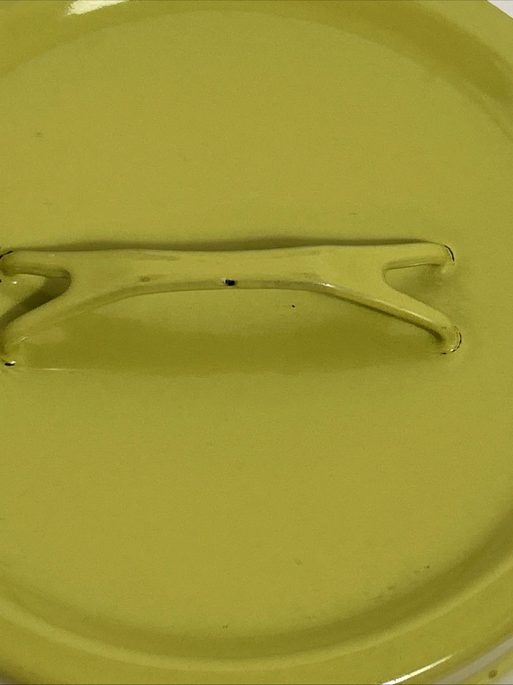 The Vintage Finel Dutch Oven Chartreuse Green Stock Pot is a round stockpot with a double handle and ceramic surface coating. Made by the brand Finel, this collectible piece of cookware is perfect for stoves of both electric and gas types. The vintage Dutch oven features a charming green color and comes with a lid, making it a stylish and functional addition to any kitchen.