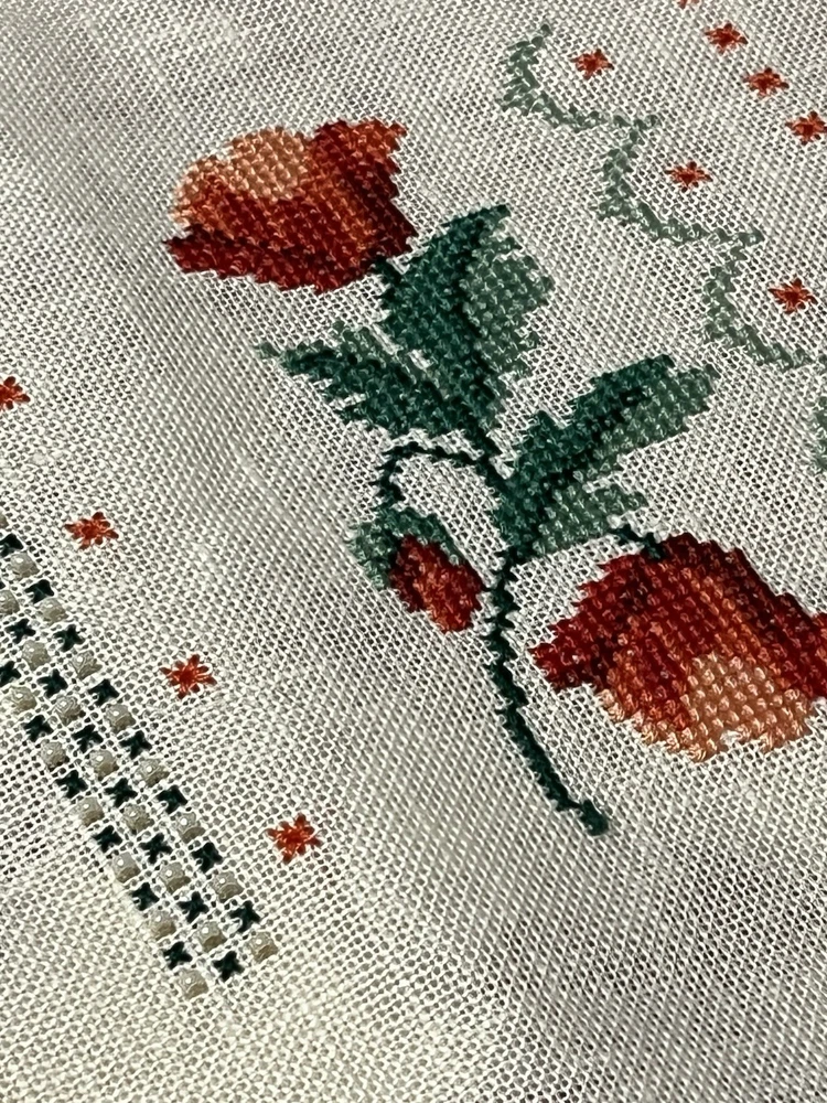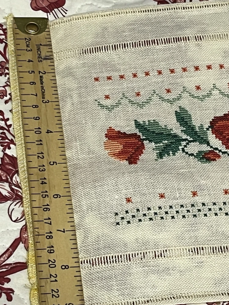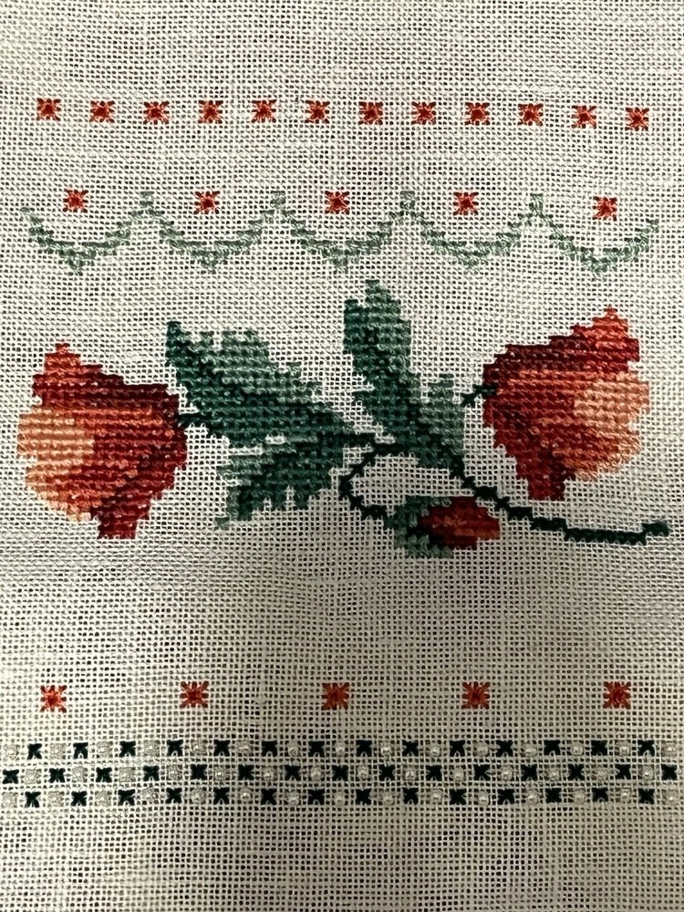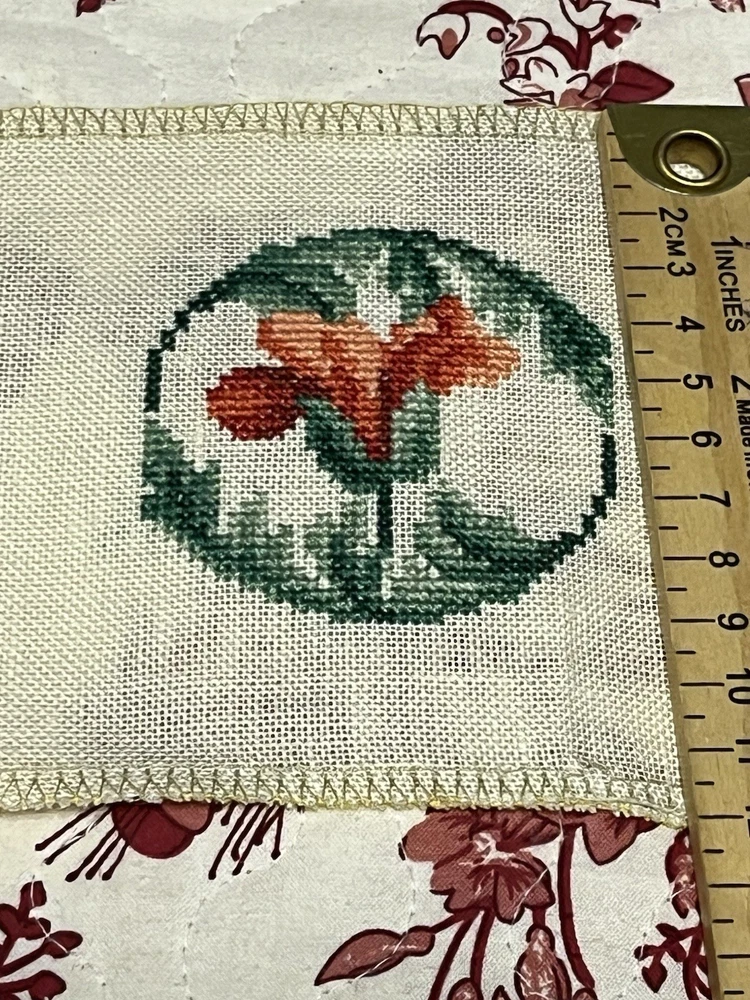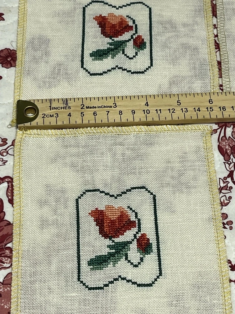 This is a lovely lot of five rose buds done extremely well. The one even has little seed pearls sewn into the bottom border. These are very shabby Chicish, cottage. I was going to frame in metal frames to hang as a small wall collage and never got round to it. Please blow up to see the beautiful details and colors these are more like a burnt orange, orangey pink hue if that is even a color (lol) with the two different greens. Please ask any questions you may have and look at photos I also put ruler for sizes. Comes from clean smoke free home! Happy Holidays!
