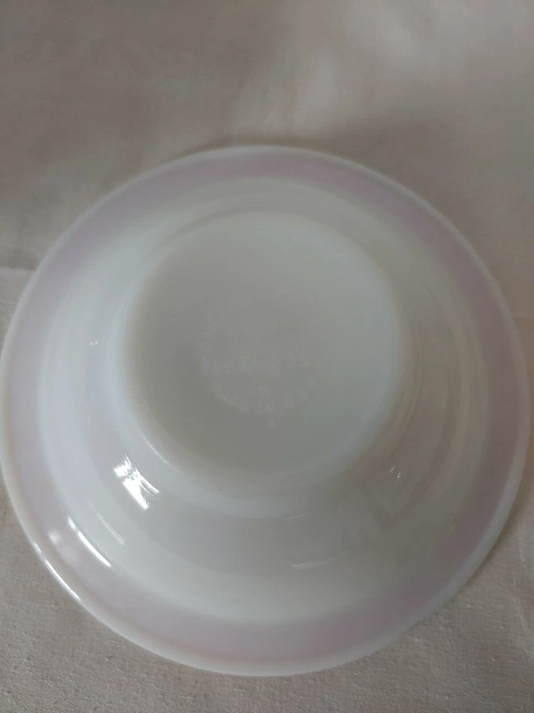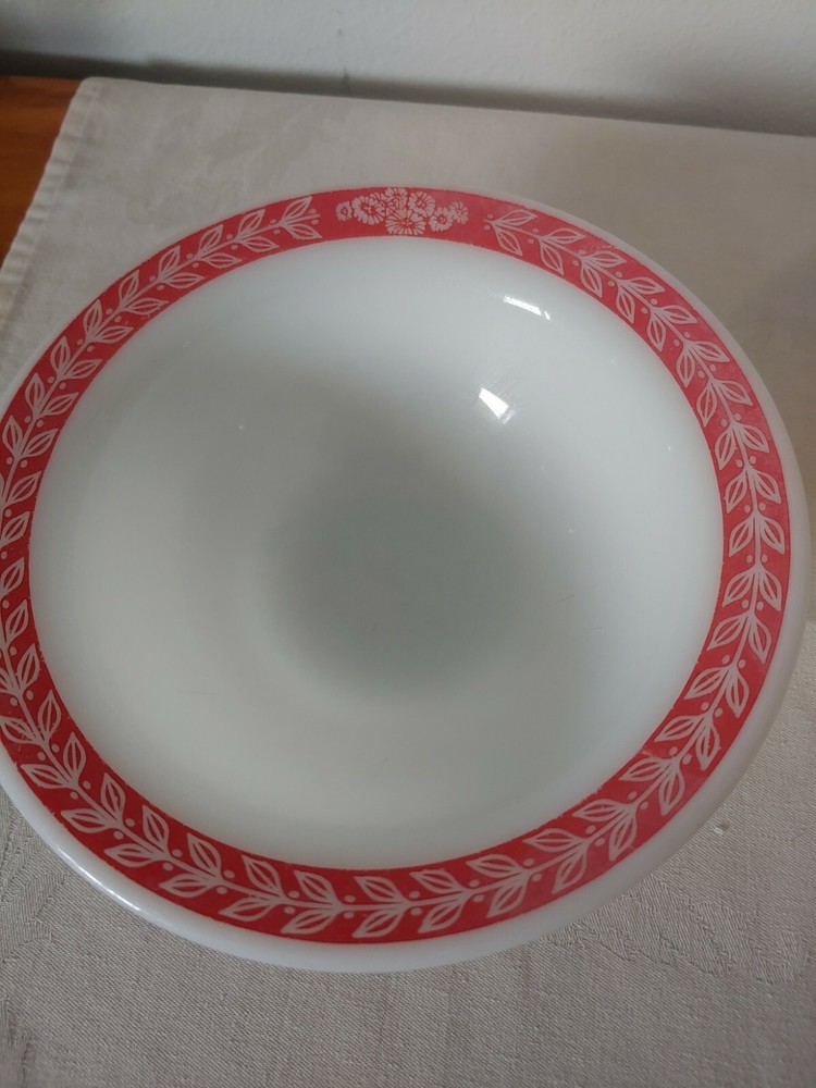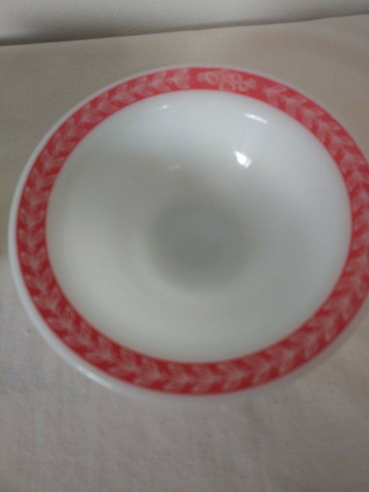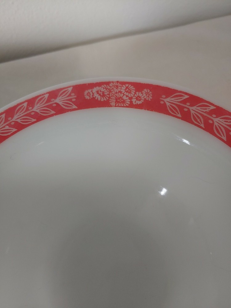 Anchor Hocking Fire King 350 Pink Daisy two 7.5" bowls. Preowned, scratches inside bowl, normal wear. See pics, one bowl has slight error in daisies original.