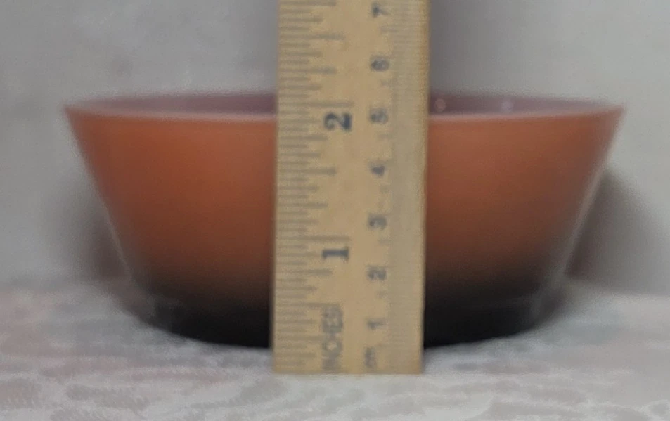 The product is a set of 2 vintage Fire King Pink/Black Ombré bowl stackable cereal bowls from Anchor Hocking. Made of glass with a glossy finish, these round bowls feature a multicolor ombré pattern and measure 2 inches in depth and 4.5 inches in diameter. Manufactured in the United States during the 1960s, these collectible bowls are a unique addition to any kitchen or dining space, embodying a retro design with a fire-themed aesthetic.