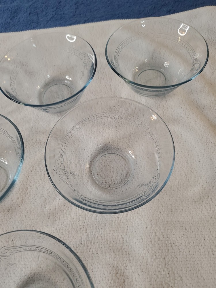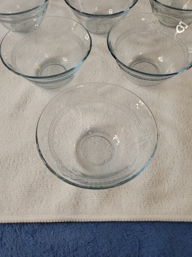 Add a touch of vintage charm to your tableware collection with this lot of 6 Fire King Sapphire Blue Philbe Custard Fruit Desert Cups. These round cups stand at 2 inches tall with a 4-inch diameter, making them perfect for serving your favorite desserts. The cups come in a beautiful blue color and feature a fruit theme that adds a pop of color to any table setting. Made of high-quality glass, these cups are durable and offer a mid-century modern style that is perfect for collectors. Each cup is marked with the Fire King product line logo, making them a true vintage find. Use them for your next gathering or display them in your kitchen for a touch of nostalgia. A couple of the bowls have very small cracks but they do not leak. Please see pictures. WILL SHIP IN A STURDY BOX. WE WILL COMBINE SHIPPING ON MULTIPLE ITEMS IF POSSIBLE. PLEASE CHECK OUT OUR OTHER ITEMS. THANKS FOR LOOKING. We ship 6 days a week. Most shipping is done with 24 business hour. We strive for excellent customer service.