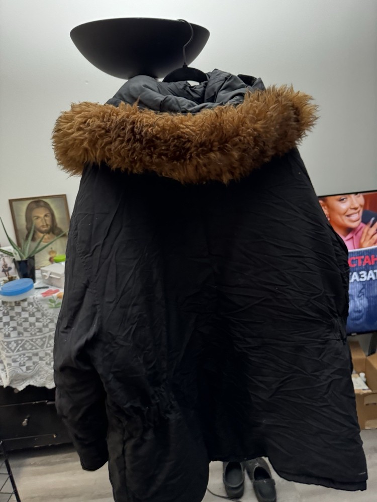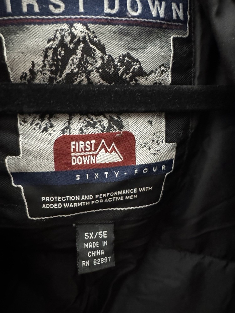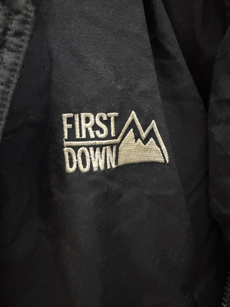 Vintage First Down Mens Sz XL Black Duck Down Puffer Coat Parka Lamb Fur Trim