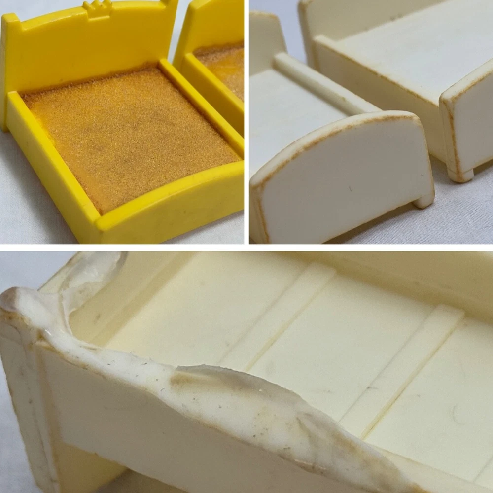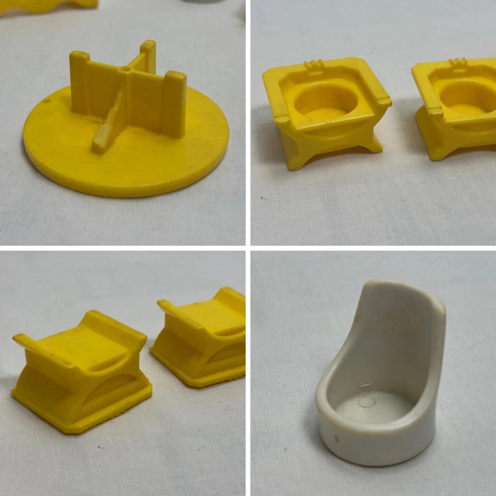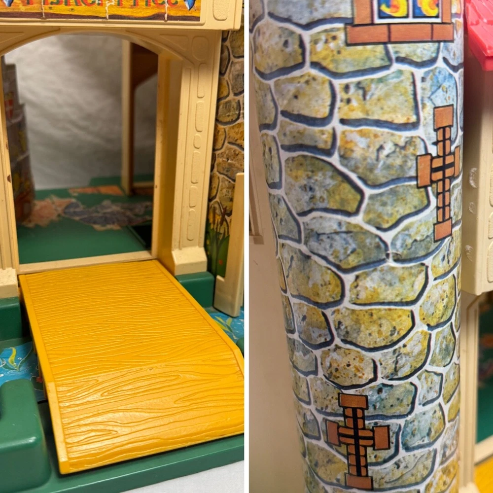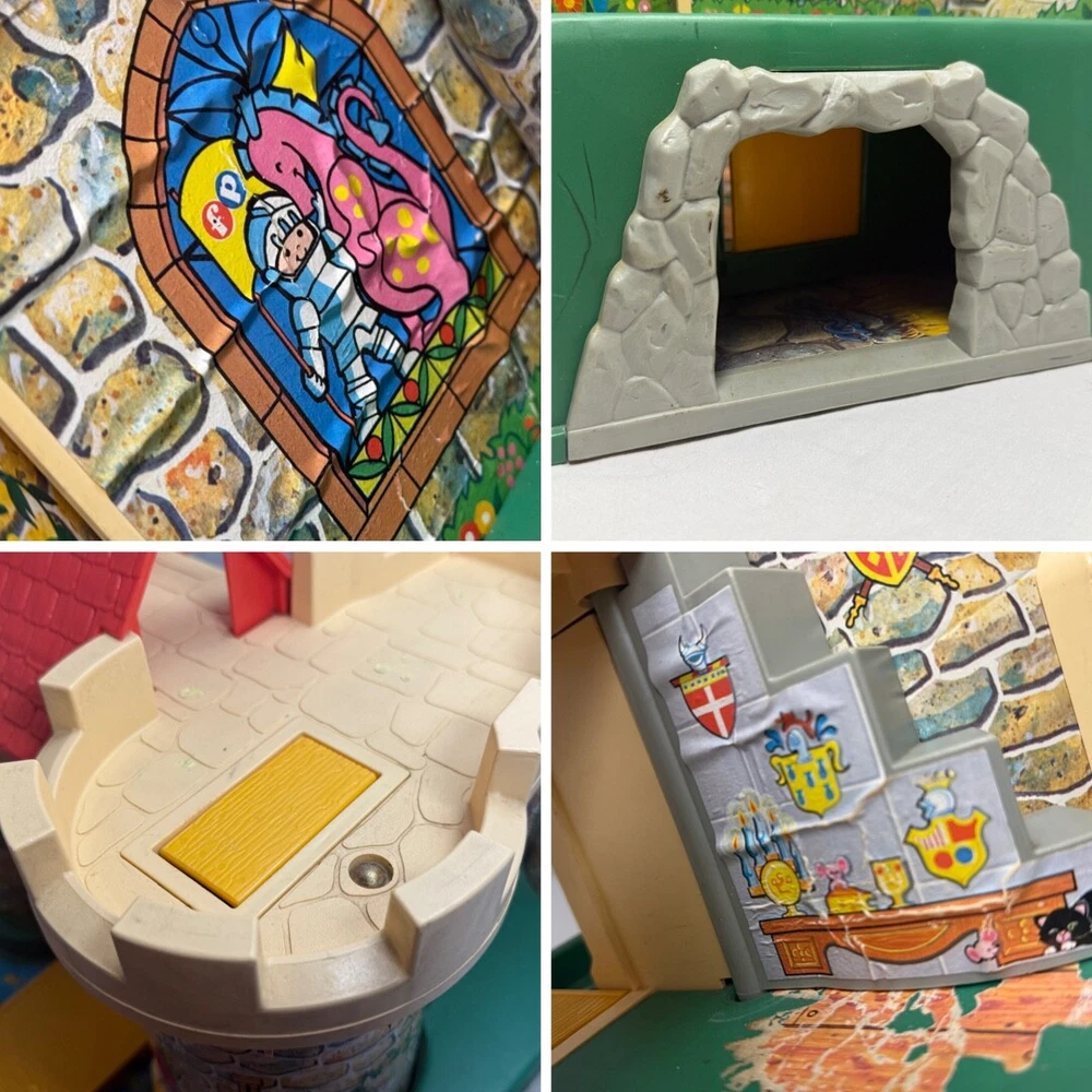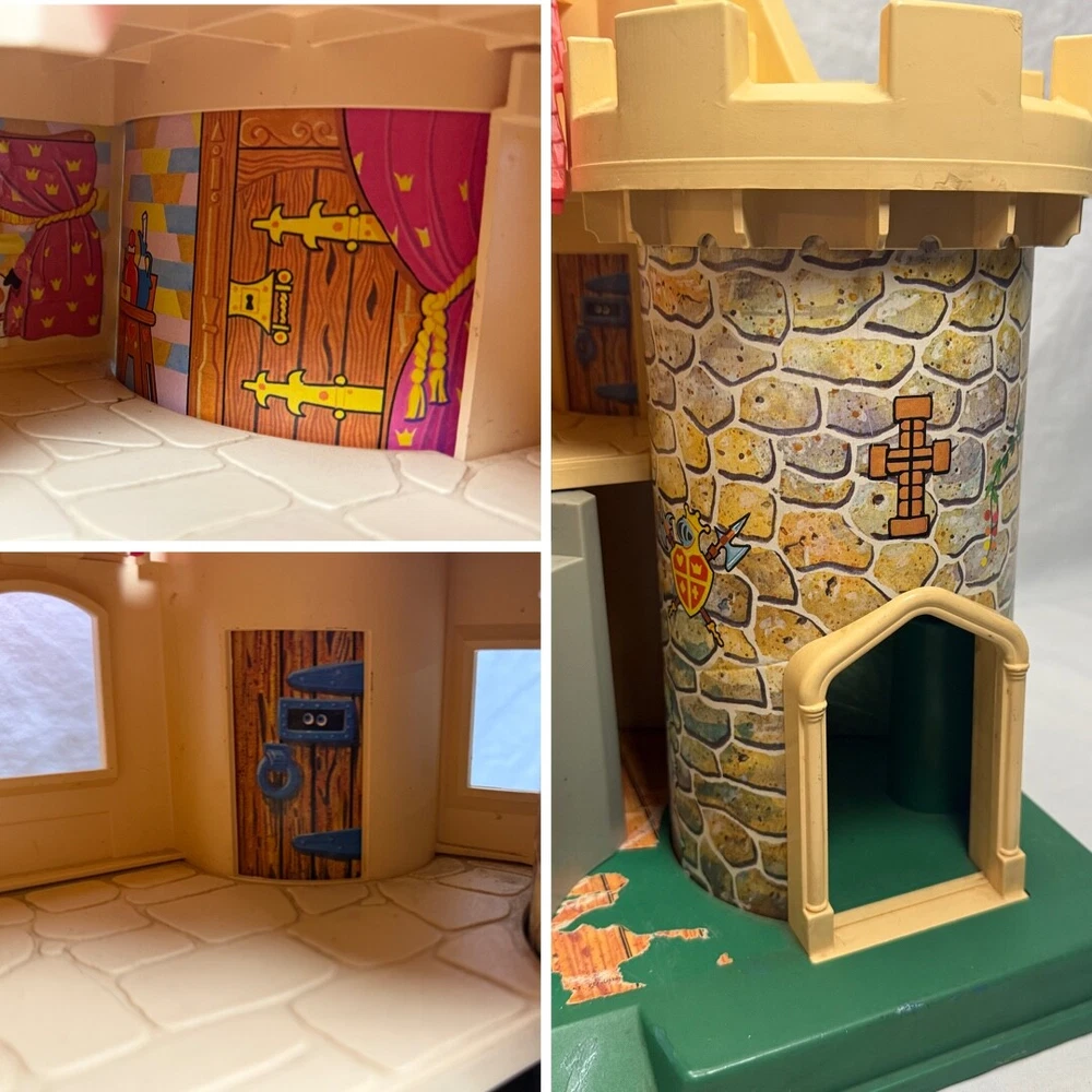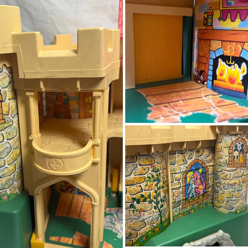 DESCRIPTION: Overall, the castle’s structure is in okay shape. However, the bolts are a bit loose and certain parts wobble. Tightening them might be possible, but I couldn’t find a tool that would fit the bolts. As shown in the pictures, the stickers have suffered significant wear and tear. They’ve been heavily scratched, scuffed, stained, creased, and have bubbled up paper. Some sections have been ripped completely off, and the stickers are overall discolored due to past playtime and age. All the accessory pieces have shown significant wear and tear, including heavy scratches, scuff marks, broken, and missing parts. They’re also discolored due to age. As shown in the pictures, one of the table legs is broken, the queen’s hat is broken, the animals are broken and missing pieces, and the beds have a very sticky residue that’s hard to remove. This whole set is sold as-is, for parts, or repair due to its significant wear and tear. SHIPPING & HANDLING: Orders are shipped within one or two business days after payment clears. For orders over $500.00, a signature upon delivery may be required. RETURNS: We do not accept any returns. Please look over all the pictures and fully read the description that are provided in this listing. Both combined give the best details for the item. We cannot accept returns for failure to look over all provided information in the listing. PAYMETNS: Payment is required within 5 days after winning bid of closed auction. Payment is required immediately for Buy It Now purchases, payments for offers are due within 5 days of accepted offer. All unpaid sales will be automatically canceled after deadline.