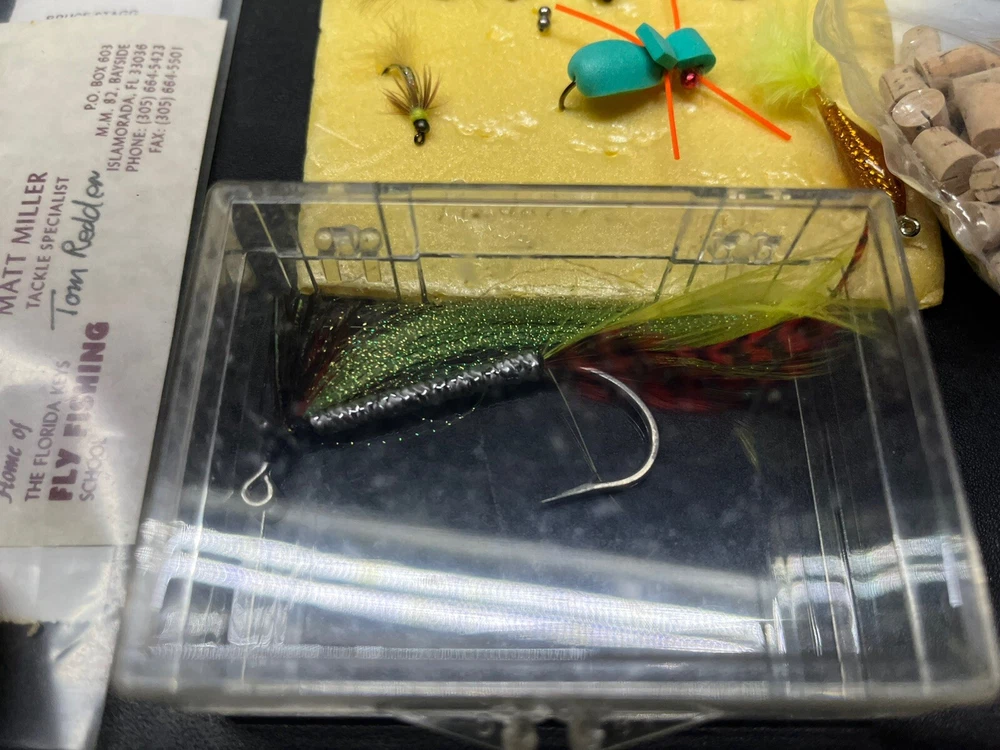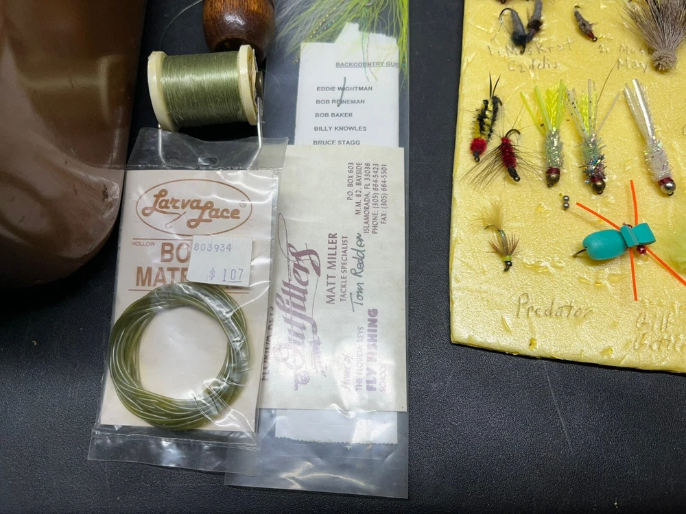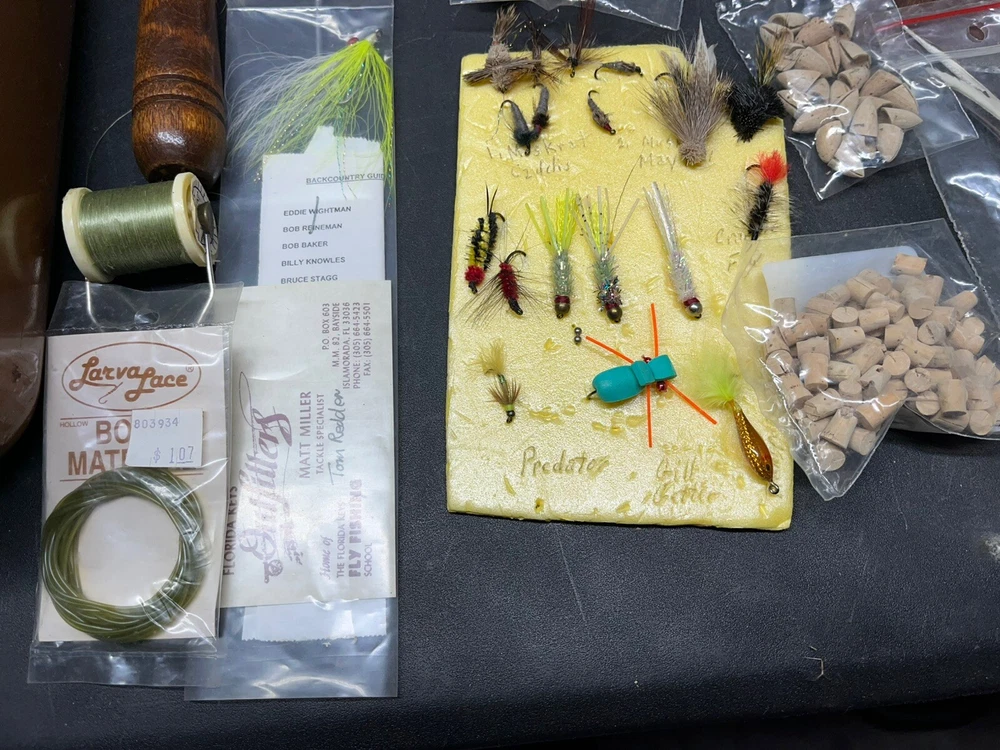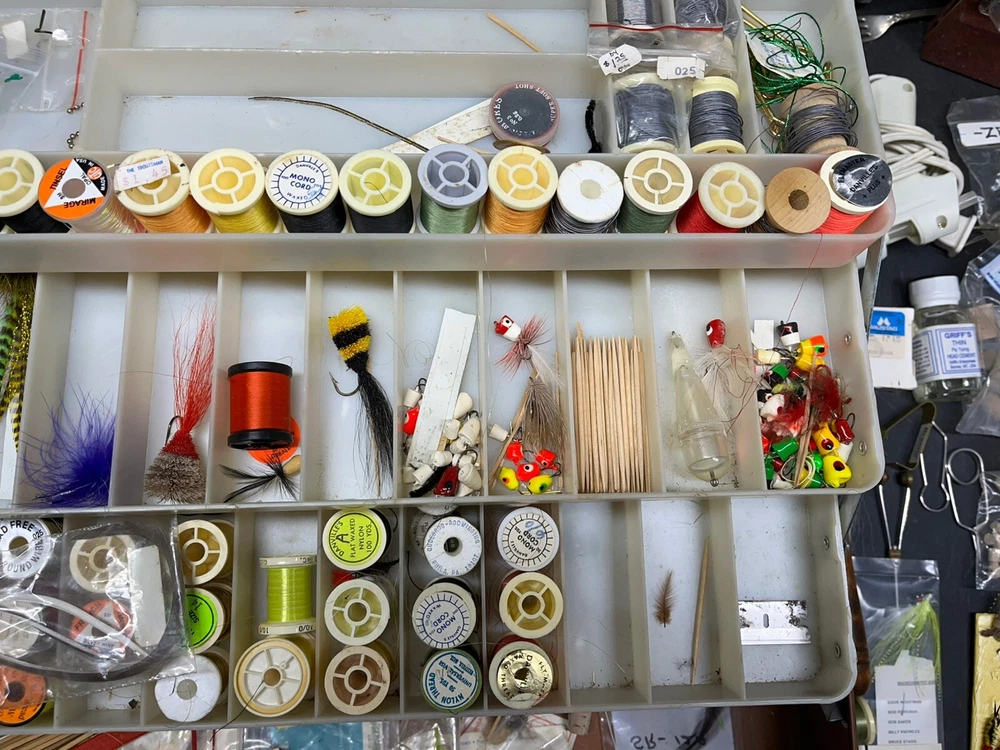 The product is a vintage fishing lot that includes new and used tackle such as hooks, lures, and items for fly fishing. The bait type is crankbait, suitable for freshwater fishing. The bait shape is fish, and the color is multicolor. This fishing lot is versatile, suitable for targeting all fish species. There are tons of line, feathers and other materials for creating your own lures and tools to help with the assembly of the lures for fly fishing and comes within a fishing tackle box