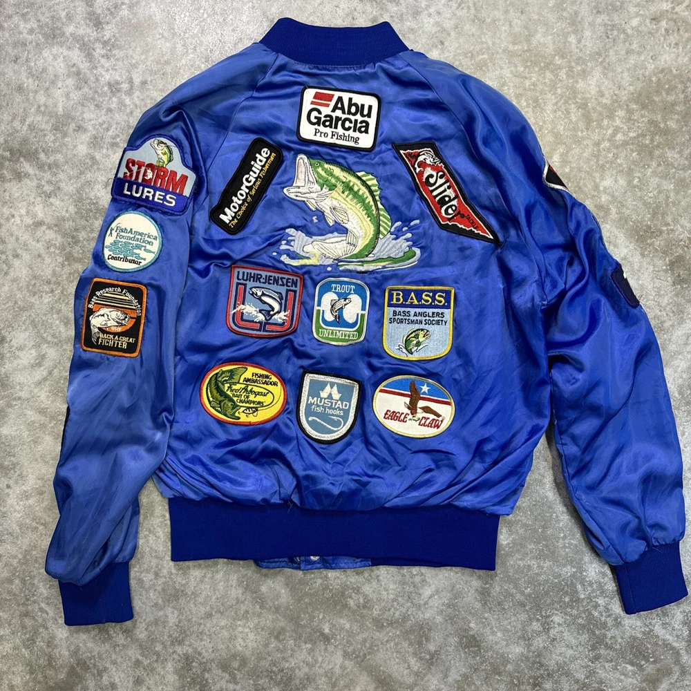 Vintage sportsman Bass fishing satin jacket all over patches 80s blue size M / L Please check the measurements in the photos in order to gurantee correct fit of the clothing item! the measurements tend to be located at the end of the set of photos! thanks! Our customers are always our first priority here at MJTvintage! if you ever have any concerns please contact us we typically respond very promptly! if there is for any reason your not happy with a purchase don't leave a bad review just contact us and we will be happy to accomodate any issues you had, we believe in going the extra mile for our customers!! lastly, you are always the top priority as the customer and we thank you for your support! Contact us We can be contacted at any time through eBay messages if you have any questions, comments or product requests. We will respond to you within 24 hours and do our best to help you out! We encourage our customers to contact us with any questions or concerns! We'd like to be sure you are completely satisfied with your purchase. Returns For our Buyers Convienience we offer free returns! we do though stringly discourage returns for the item not fitting as we include detailed measurements in our listings so please try to be respectful of that, thanks! Shipping All packages are shipped next day 100% of the time except if purchased on the weekend they go out on monday morning! we pride ourselves on our fast shipping and hold true to it always! Disclaimer most of the items we sell are vintage (20 years & older), therefore some of them might have minor flaws that are caught in the pictures but we try our hardest to describe and picture any flaws! Free eBay listing template designed by © dewiso.com .