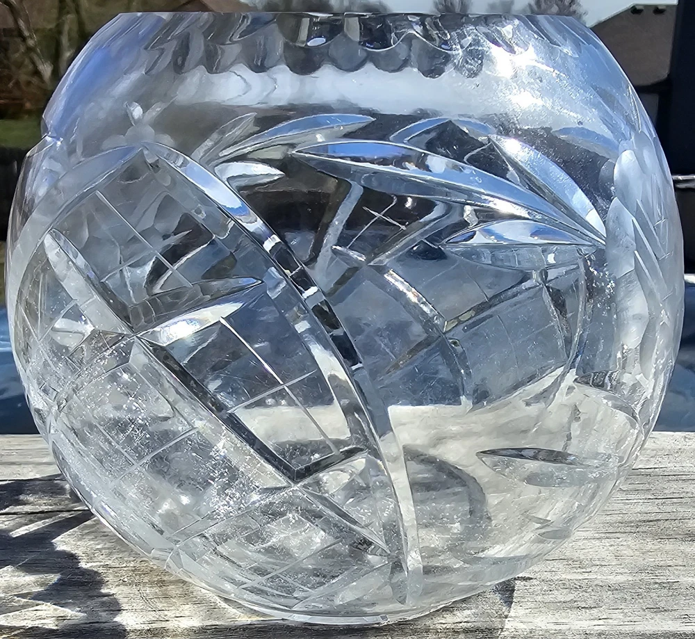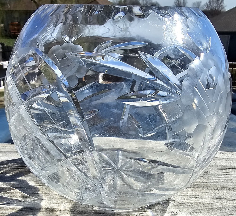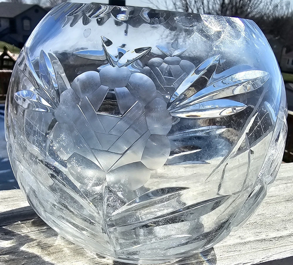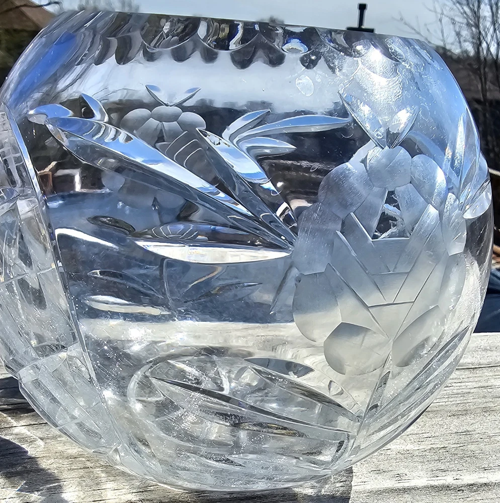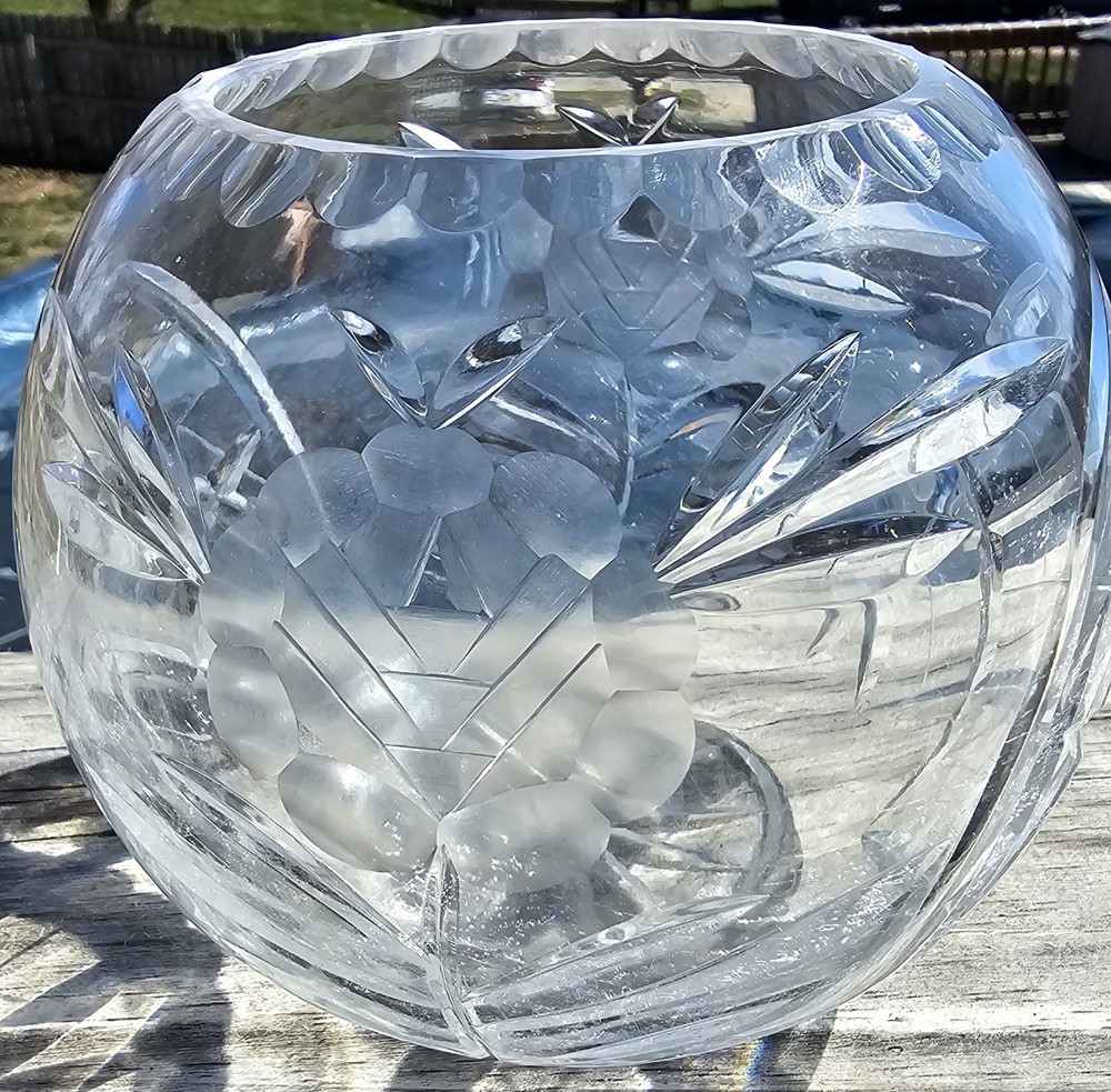 Vintage Lead Crystal Floral Round Bowl Vase Cut & Etched 8.5" Diameter, This beautiful round crystal vase is perfect for displaying your favorite flowers or as a standalone decorative piece. The intricate etched design featuring a floral design adds a touch of elegance and romance to any space. Measuring 8.5 inches in diameter and 7 inches in height, this medium-sized vase is made of high-quality crystal and is easy to clean with just warm water. Its traditional style and classic clear color make it a versatile addition to any home decor. The topped scallop edge is in perfect condition. The inside of this bowl looks to have some inner "crazing" or scratches about halfway down the bowl to the bottom, please see pictures for details!! ***DISCLAIMER: *PLEASE VIEW ALL PHOTOS & READ FULL DESCRIPTION *I inspect each item myself & try to list any & all defects that I see. *All measurements are approximate. *True color may vary from screen to screen & light to light. *Please feel free to ask any questions before bidding. *Items come from a Smoke-Free home. *Shipping available within the Continental United States. ***Possible discounted shipping available if multiple items are purchased within a reasonable time of each other*** *If you are not satisfied with any aspect of your purchase, Please contact me before leaving negative or neutral feedback. I want you to be happy with your purchase!! *THANKS FOR LOOKING!!!