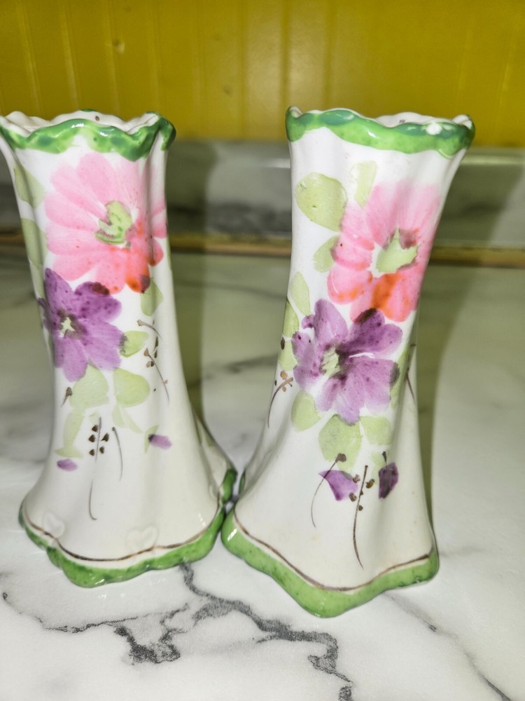Vintage Floral Hat Pin Holder 4-1/2" tall - set of 2 - can be used as vase Thanks for checking out my item. I try to ship items the same day or next business day. I combine shipping. If you have any questions, please let me know.
