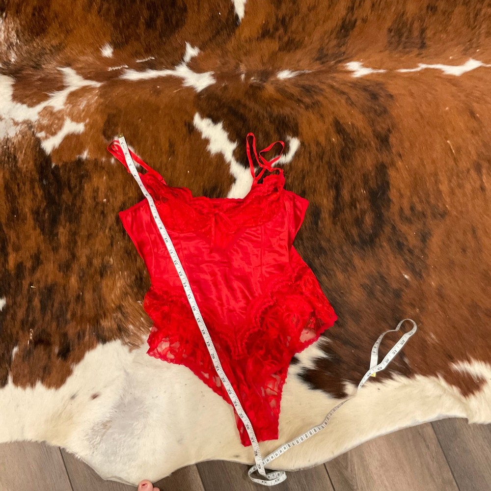 Vintage Floral Lace V-Neck Faris Bodysuit High Cut Size M Red Description: Condition: Very Good Condition Brand: Vintage Size: M Color: Red High Cut V-Neckline Floral Lace