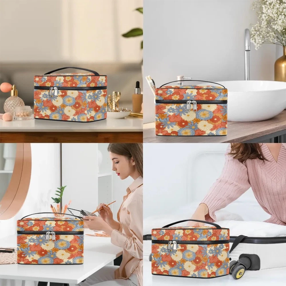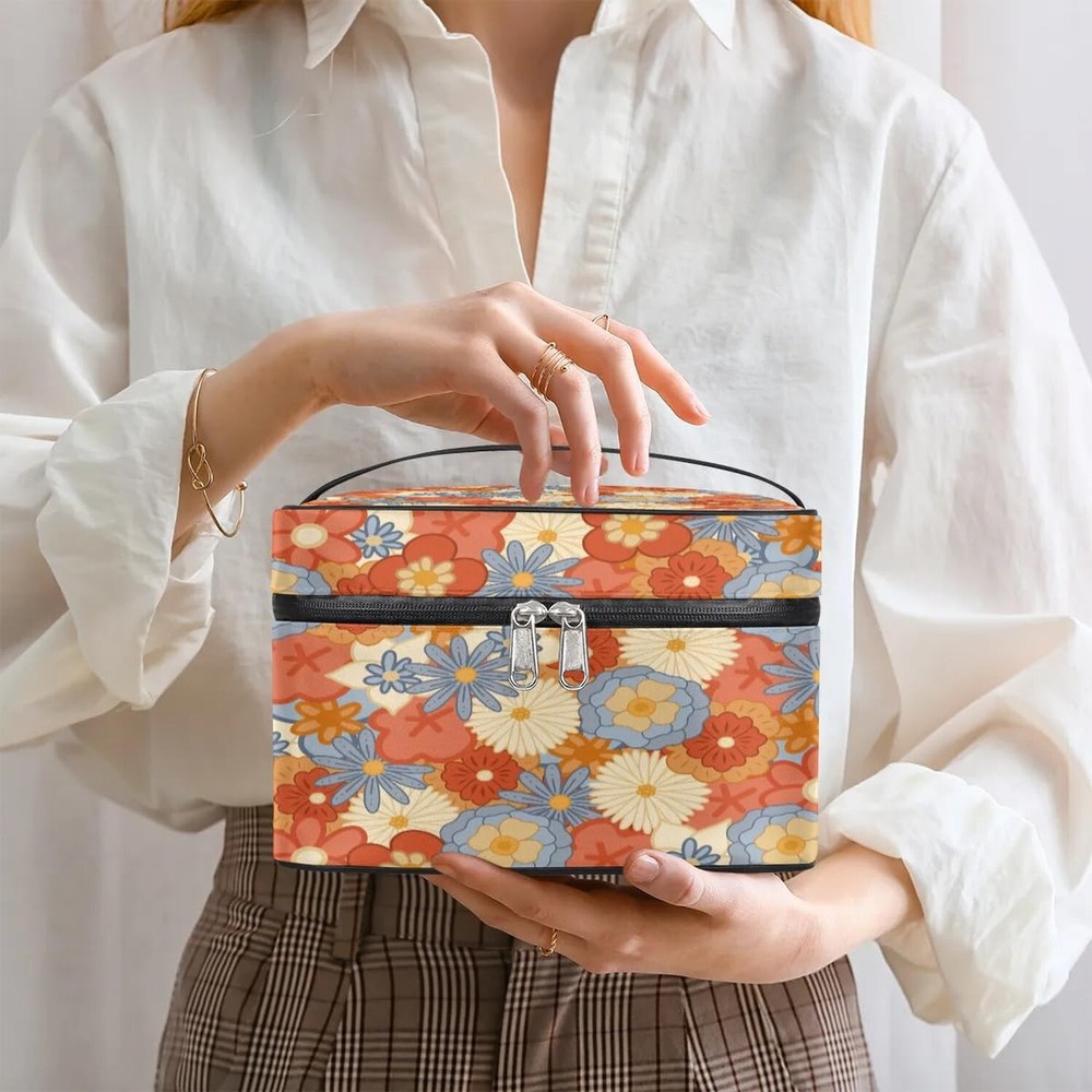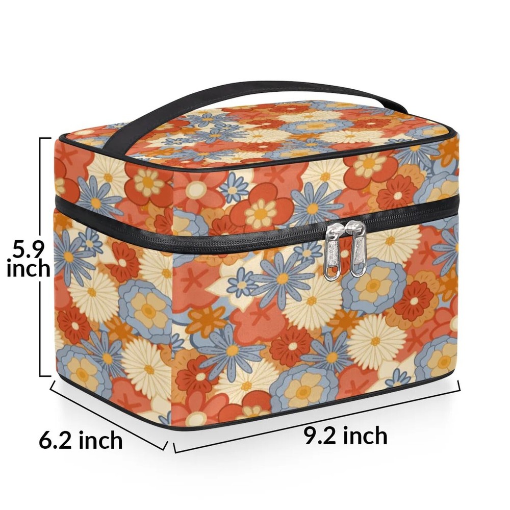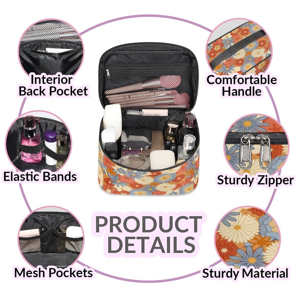 Travel Makeup Bag, Vintage Flower Cosmetic Bag for Women Girls, Portable Large Toiletry Bag Case Organizer for Toiletries Accessories Brushes Product Details Color: Vintage Flower Brand: lakefvgk MPN: Does not apply UPC: Does not apply EAN: Does not apply Product Dimensions: 9.2 x 6.2 x 5.9 inches Item Weight: 10.6 ounces Department: Women Country of Origin: China Large Capacity Makeup Bag: Size 5.9" x 6.2" x 9.2". With 1 main bag, 1 zipper breathable mesh net pocket on the top cover, 1 interitor back pocket, and 4 elastic bands. This makeup organizer has super large capacity to organize your cosmetics and toiletries. Nice pattern design: We offer different colors and patterns to choose from. It would be a great gift for women and girls, daughter, wife, girlfriend, friend. Nice gift chioce for Valentine's Day, Christmas, Mother's Day, Birthday etc. Easy to Carry: This travel makeup bag has a handle for easy picking up and moving, and the top handle is easy to carry.Two-way zipper switch keeps your cosmetic accessories safe and easy to access them and use them quickly and more convenient. Multiple Use:You can use it as a makeup bag, travel toiletry bag, or shaving bag. Ideal for exercise, travel, sports, tennis, basketball, yoga, fishing, hunting, cycling, gym, yoga, beach, pool, camping, practice days or weekend trips. Material: High quality polyester and smooth water-resistant lining, lightweight,durable and easy to clean, no worry about the bag and the toiletries getting wet, keeping it clean and tidy.