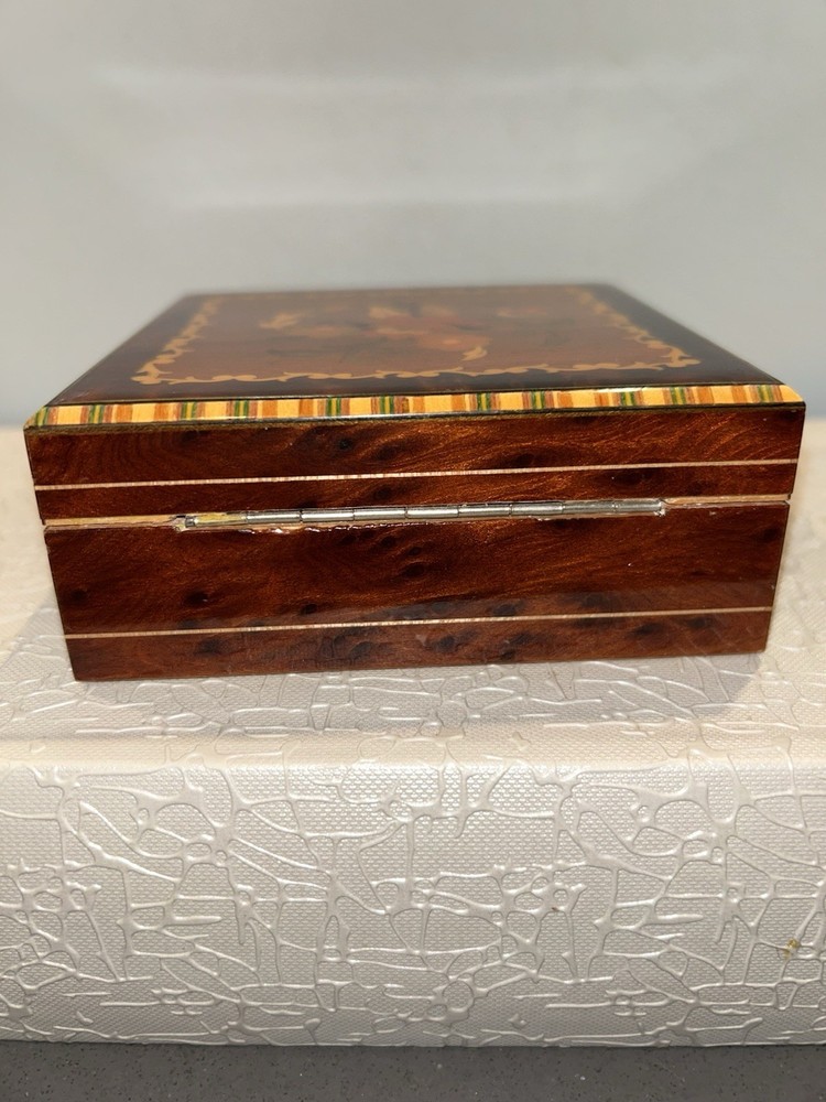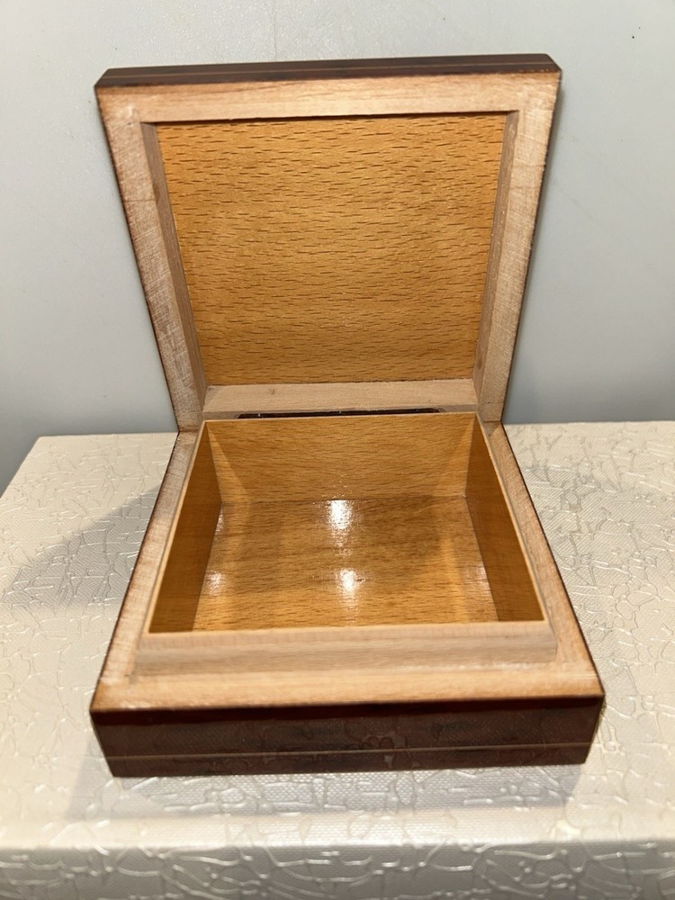 Room:Any RoomOriginal/Reproduction:OriginalTheme:ArtHandmade:YesShape:RectangleColor:BrownCare Instructions:Clean with Damp ClothCustomized:NoPackaging:BoxCountry/Region of Manufacture:IndiaEra:Late 20th Century (1970-1999)Brand:UnbrandedType:Jewelry BoxMaterial:WoodCollection:Keepsake BoxesPattern:FloralSize:SmallOccasion:All Occasions