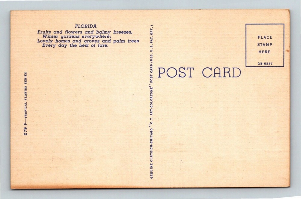 Region: See Postcard Scan City: See Postcard Scan Circulated: Yes Original/Licensed Reprint: Original Subject: See Postcard Scan Era: See Postcard Scan Featured Refinements: Linen Postcard Continent: North America Theme: Cities & Towns Type: Printed (Lithograph) Country/Region of Manufacture: Unknown Unit of Sale: Single Unit City/Region: Florida Country: See Postcard Scan Postage Condition: Unposted