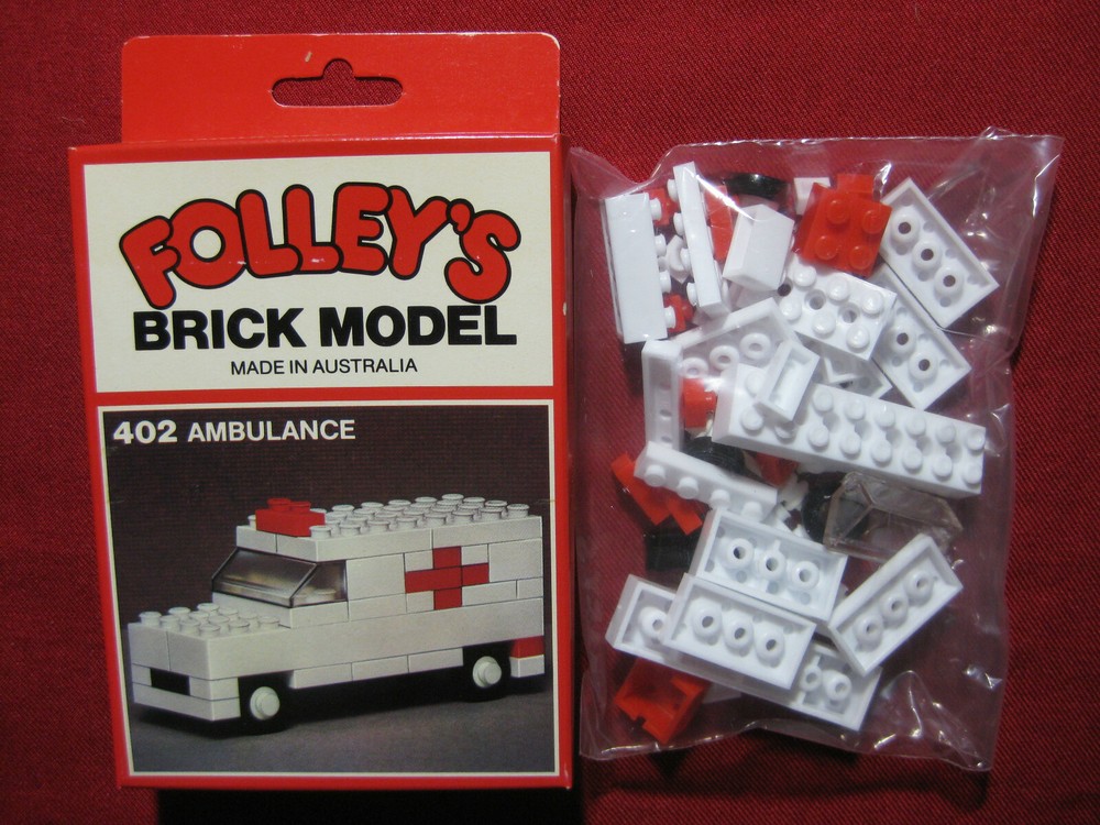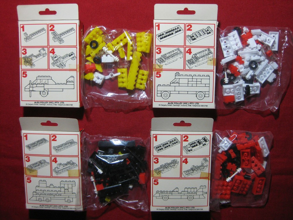 Hello friends, you are looking at a lot of 4 vintage Folley's Brick Model sets. Last set in stock! Made in Australia sometime around the early 1970s. You will receive the Aeroplane (#401), Ambulance (#402), L oco Engine (#403) and R acing Car (#404) . Compatible with Lego bricks. All sets are unused and complete, still sealed in their original bags with outer boxes included. The boxes are bright and clean with only minor signs of age. Please see photos for further details and check out my other items. I am happy to combine shipments when possible. You can use the "Request Total" option or message me for an updated invoice when you are ready to pay for multiple items. Otherwise you can pay the full amount charged by eBay and all excess shipping costs will be refunded when your items are sent. All items are described accurately, packed safely and sent quickly. Customs fees or other taxes/charges are the buyer's responsibility. You will receive a notification when your order is shipped. You are buying from a trusted seller with nearly 20 years of experience. Please contact me with any questions or concerns, I respond to all messages. Your complete satisfaction is very important to me. Check my listings again soon, new items are added every week.