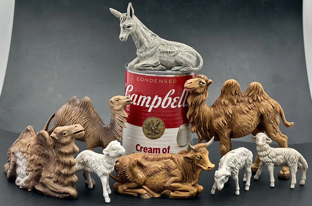 Lot includes all animals shown. Tallest standing camel measures approximately 4 inches tall and 4 3/8 inches long. White sheep measure 2 inches tall. All figures are marked ITALY, but marks are different on some pieces. Surface wear as seen in pictures. Does not include any original packaging. Thanks for looking and happy buying! Follow this link to see all our NATIVITY items! Follow this link to see all our RELIGION & SPIRITUALITY items! Follow this link to see all our CHRISTMAS items!
